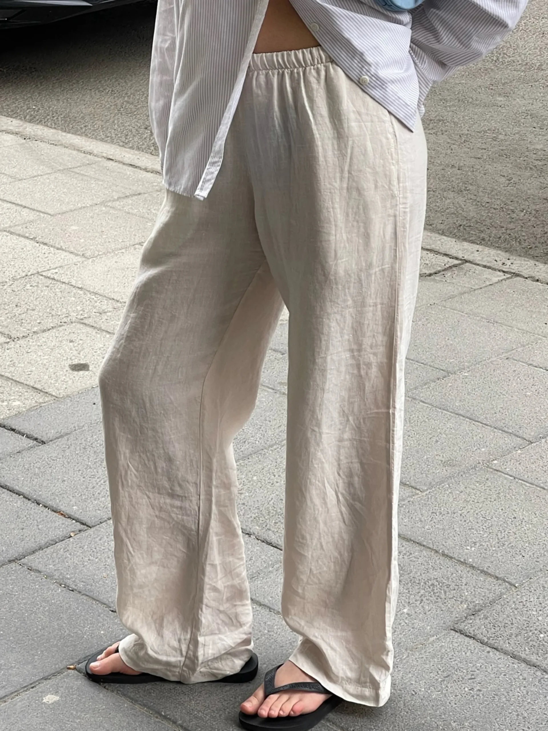 A must-have-item in any wardrobe is the Linen Pants! The relaxed fit and drawstring waist makes them adjustable and comfortable. The natural linen material is breathable and has been pre-washed to prevent it from shrinking. The linen fibers comes from within the EU and is certified with Masters of linen certification.
