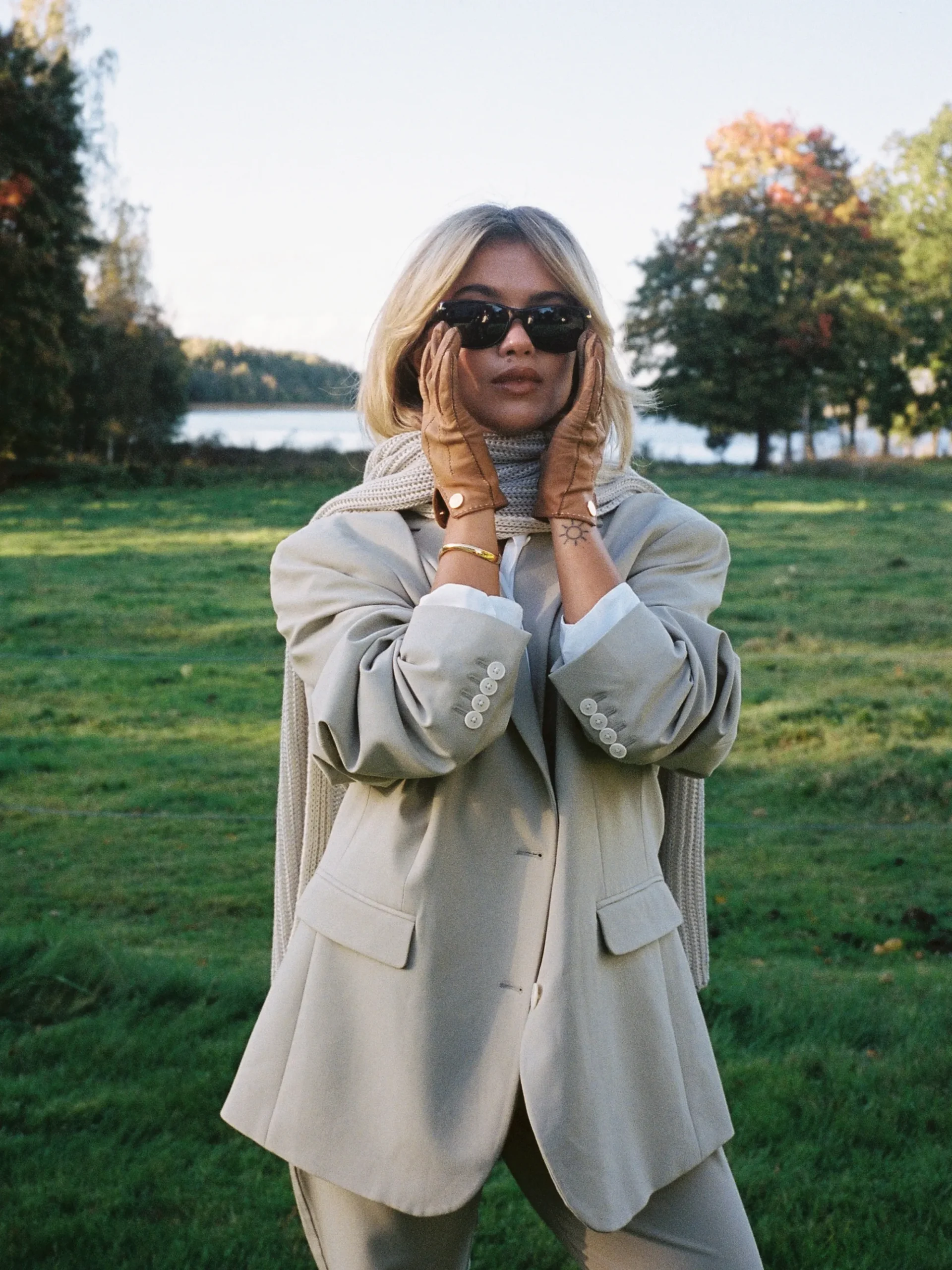 At Djerf Avenue, we have chosen to work with certified recycled polyester for its durability, versatility, and potential to extend the lifespan of our garments, reducing the need for frequent replacements. Unlike animal-based materials for example, the production impacts less on animal welfare and biodiversity. Using recycled polyester significantly lowers our environmental impact by reducing the demand for new petroleum extraction and thus limiting our carbon footprint. We’re also constantly exploring new innovative, biodegradable materials for future use.