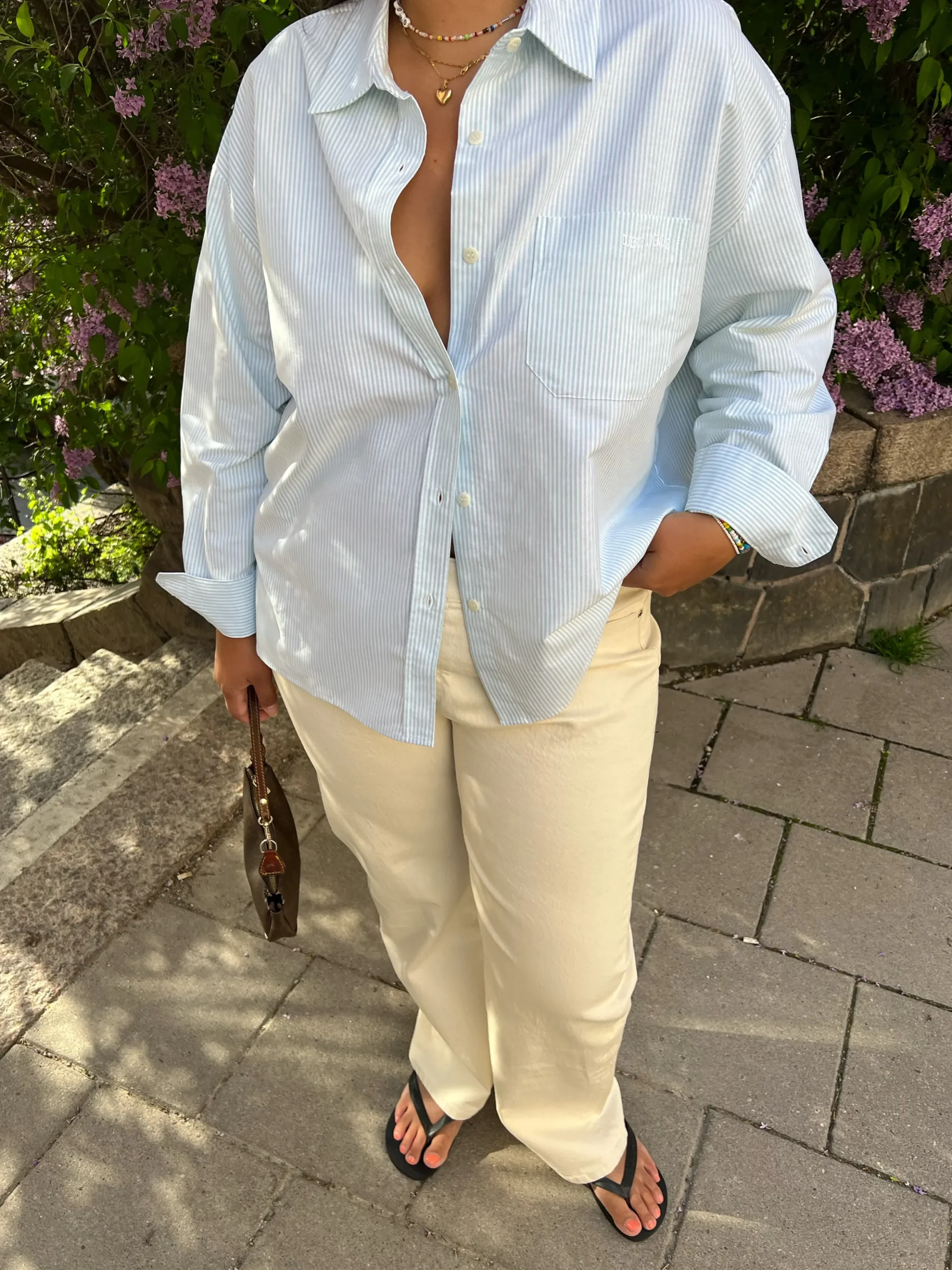 Our Breezy Shirt quickly became a staple piece in all of our wardrobes. It’s a must-have item for every season. It’s easy, light and so comfortable that we want to wear it every day. It closes at front with 100% natural corozo buttons, has a cute breast pocket with our embroidered logo and a slit in the back. The fit is quite boxy and a bit oversized, just how we like it.