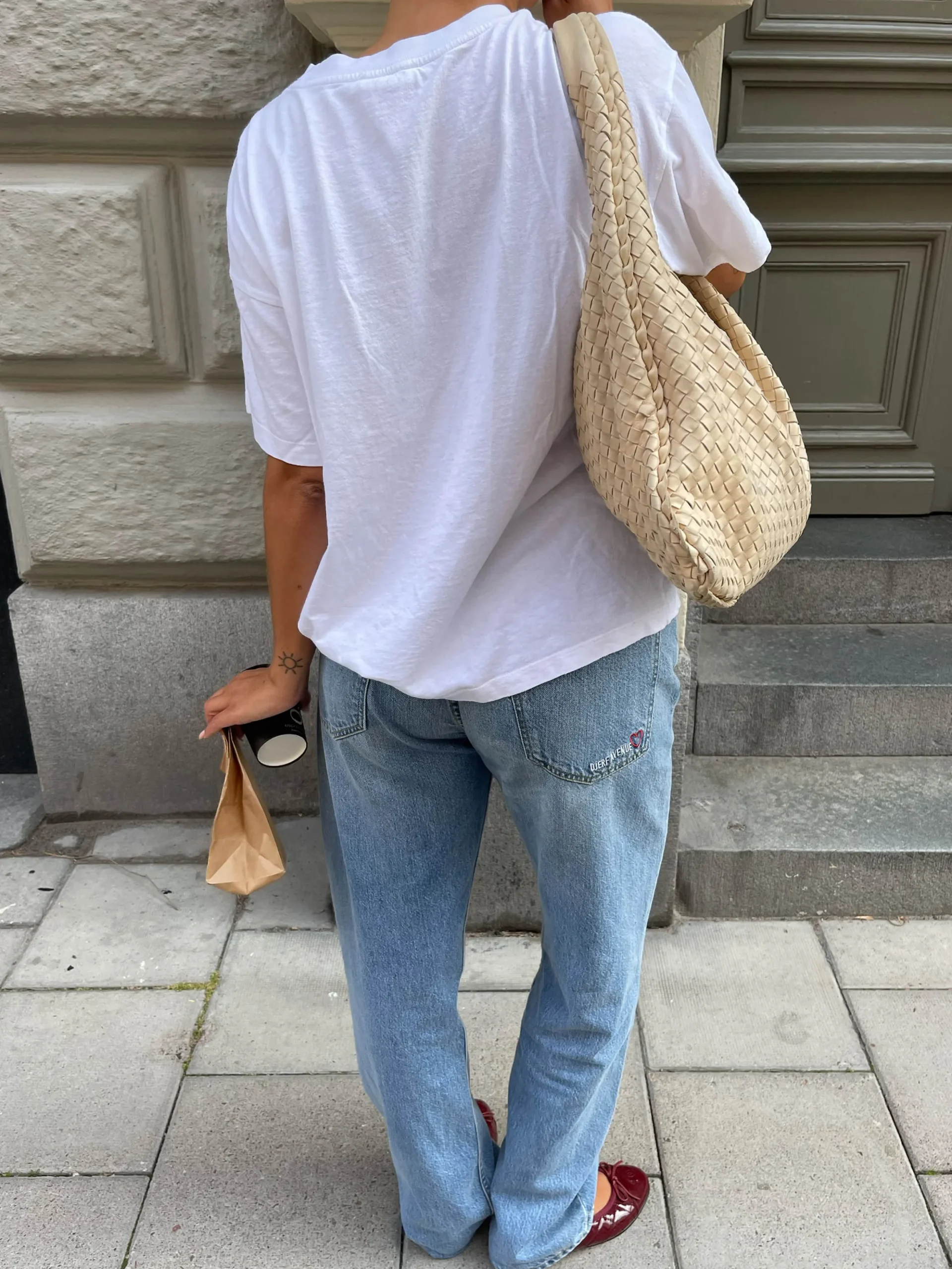 The Essential T-shirt will easily become your new favorite T-shirt that you can practically live in on the daily. Designed with the ultimate comfort and style in mind, it has a straight, boxy fit that we love and an embroidered Djerf Avenue logo at the front.