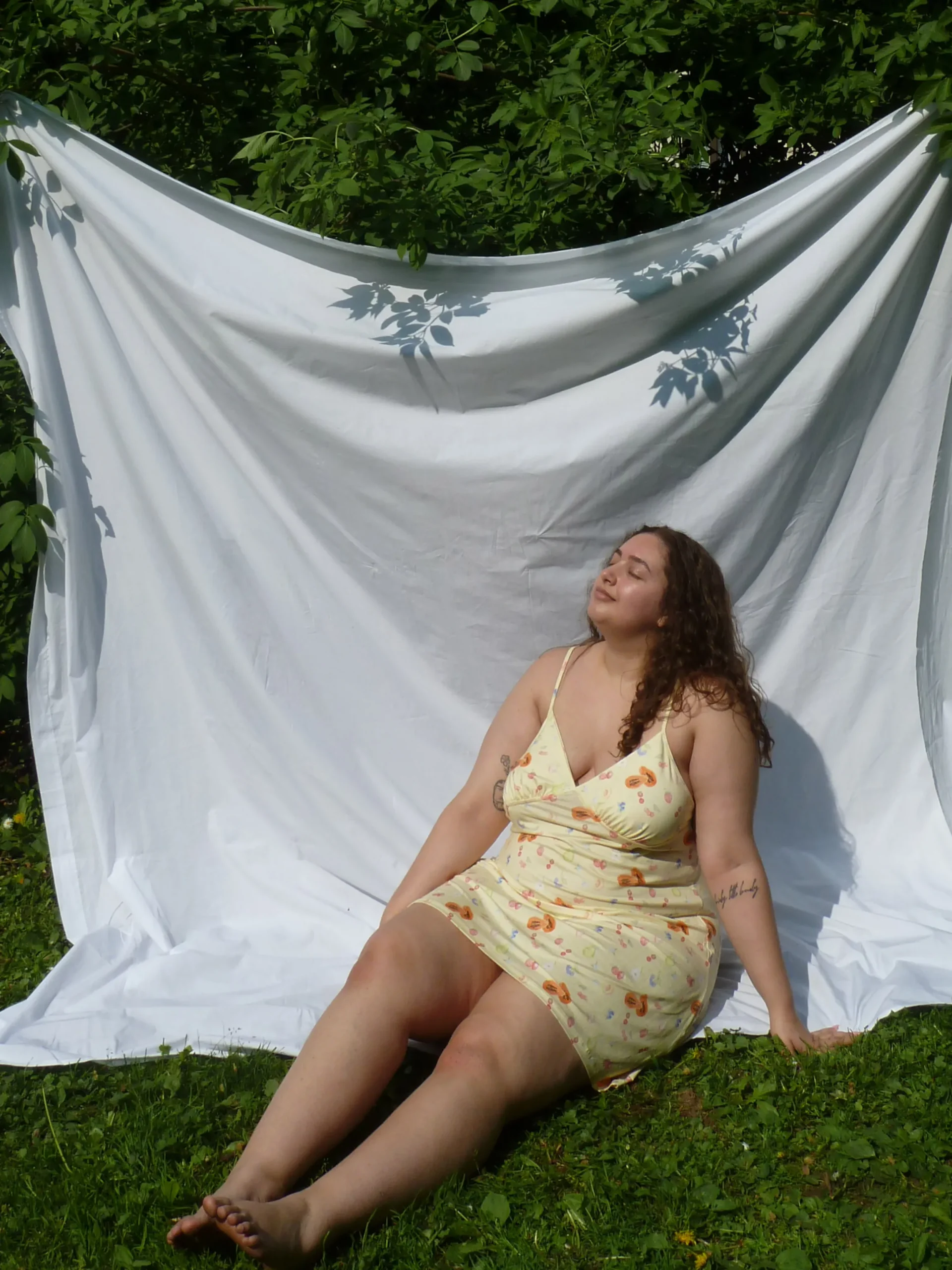 The Go Slow Dress is the perfect little dress to cuddle up in at home or to cover up with on a sunny day. It is made out of the same soft TENCEL™ Lyocell as our other Go Slow items. The thin straps and cups gives it a very flattering look and the length is just above the knee.Copyrighted print