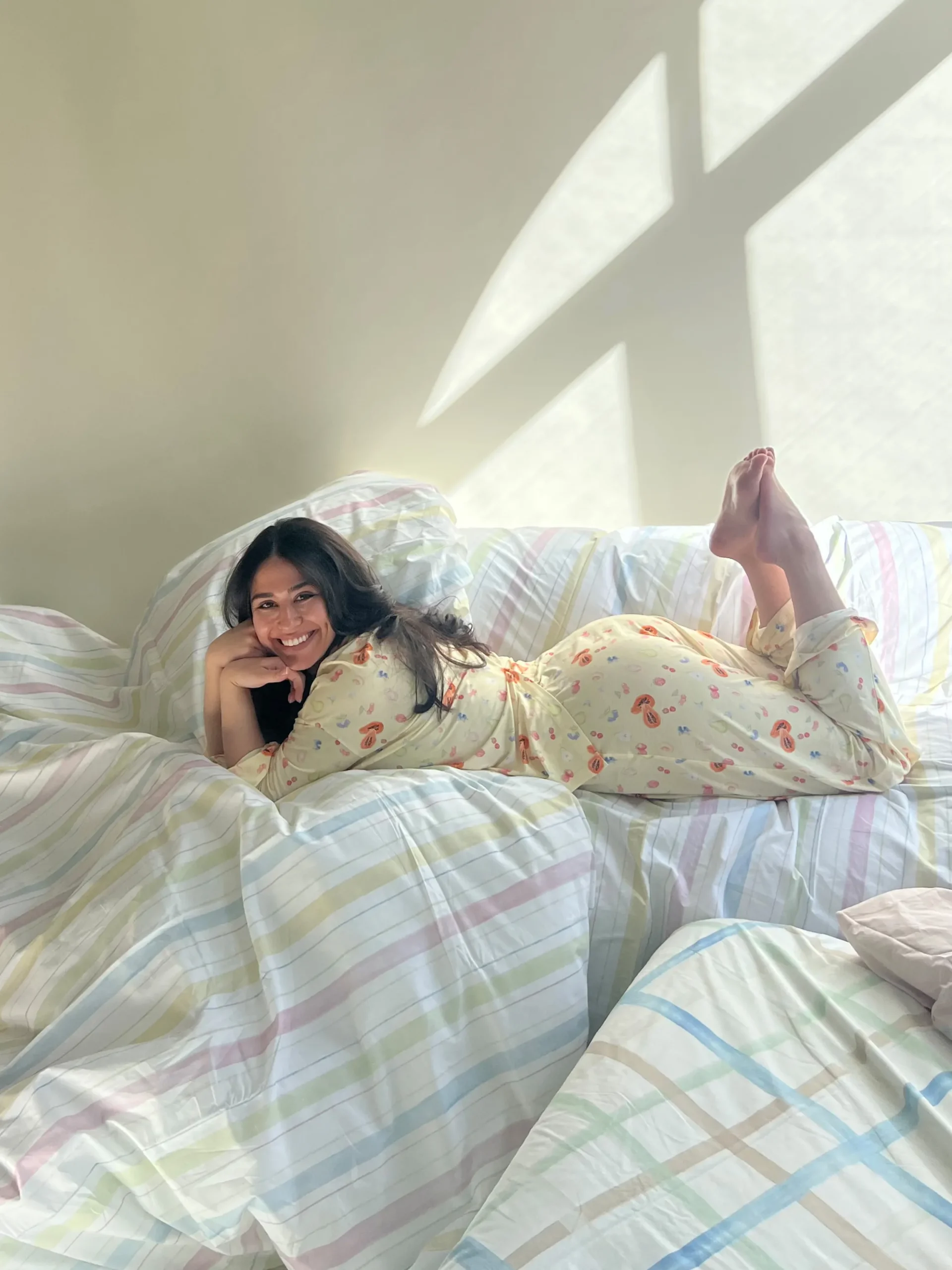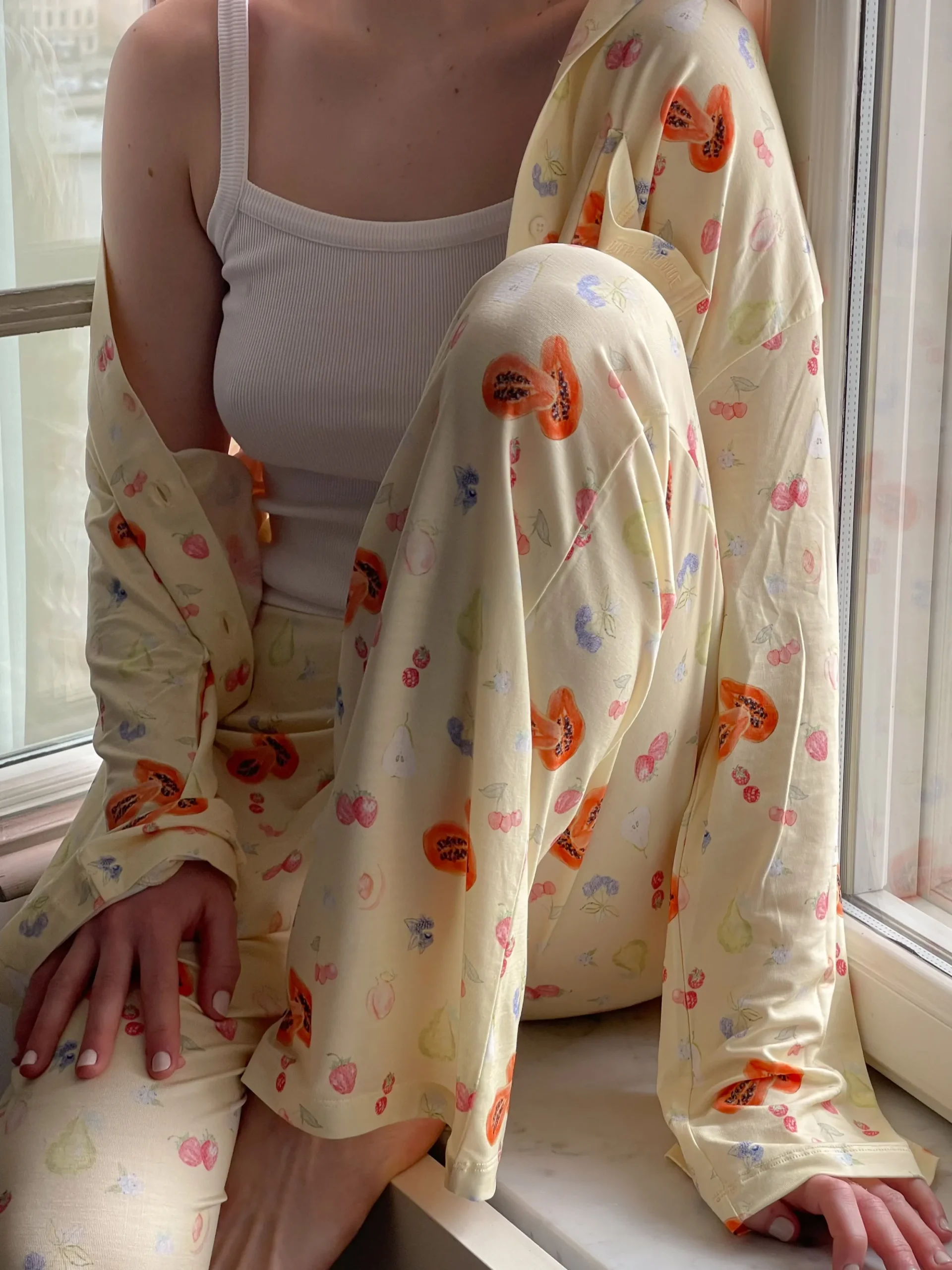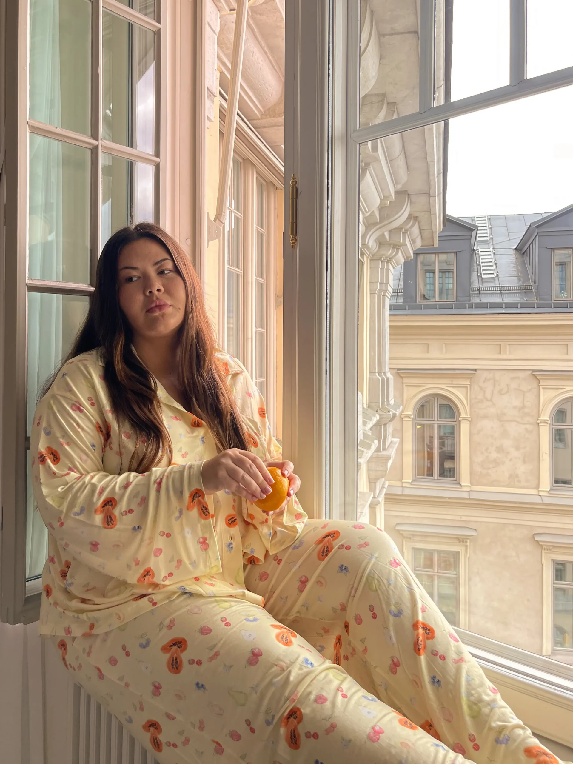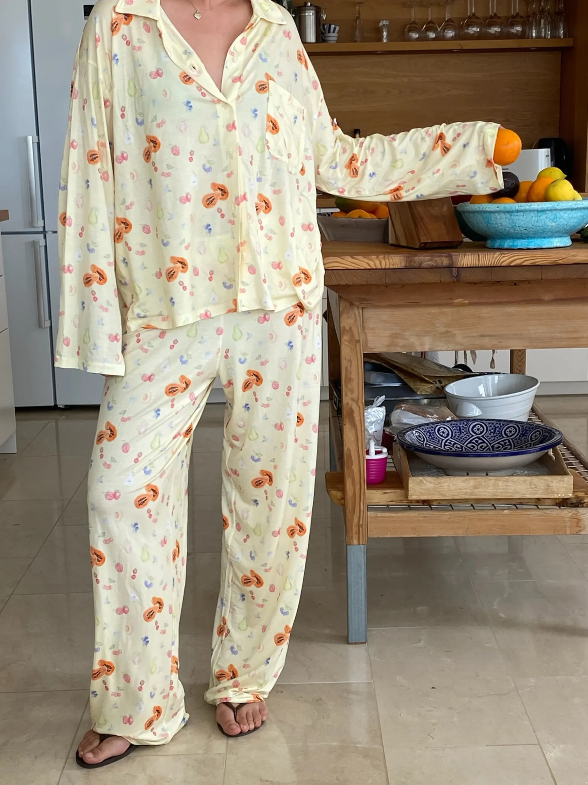 Our Go Slow Pants are beyond comfy, they are a perfect addition to your all-day uniform on a slow day at home, or when you wind down after a long day. These pants are not only super soft but also thin, stretchy and breezy. Wear them together with our matching Go Slow Shirt for the whole pyjamas look!Copyrighted print