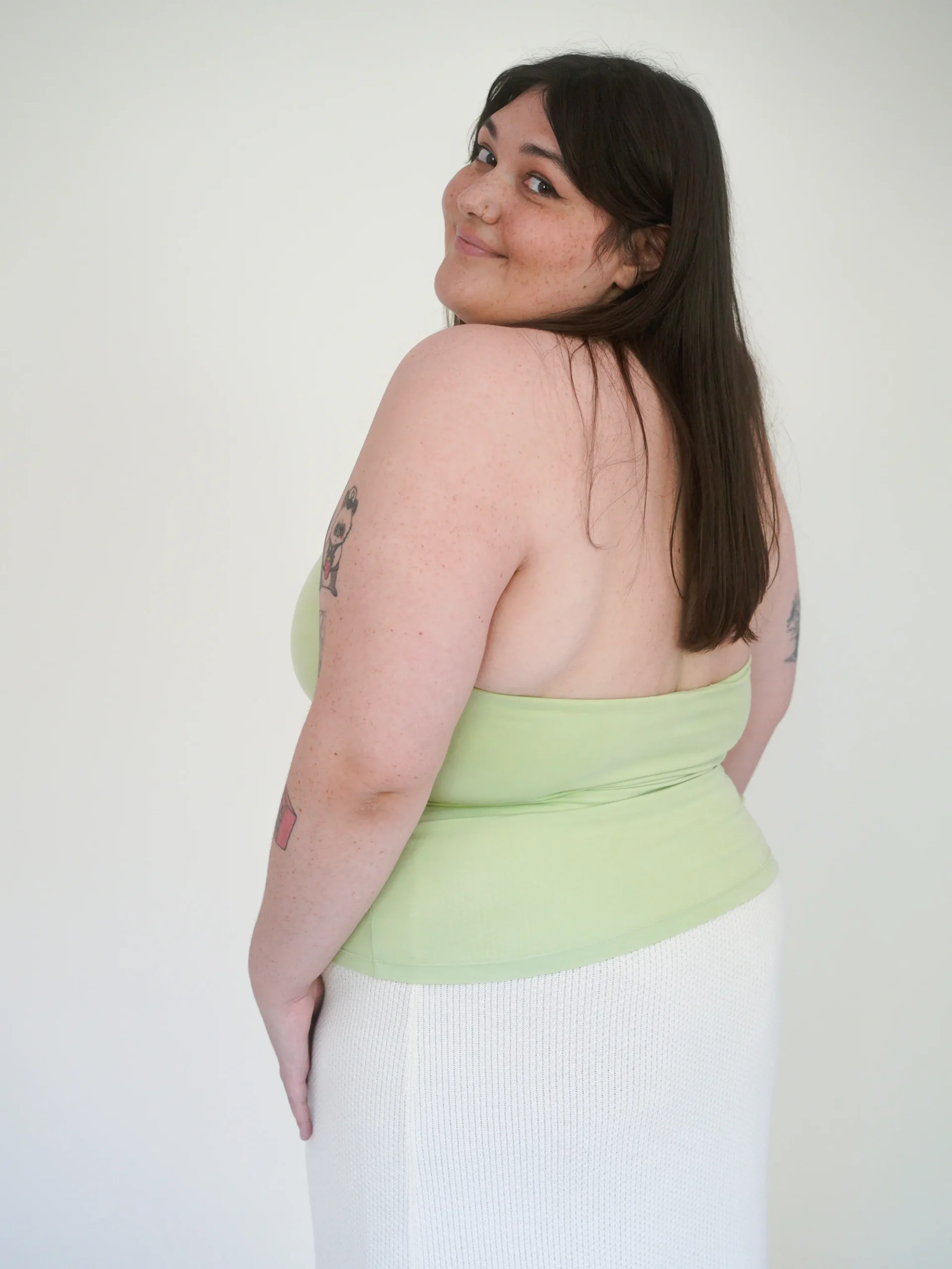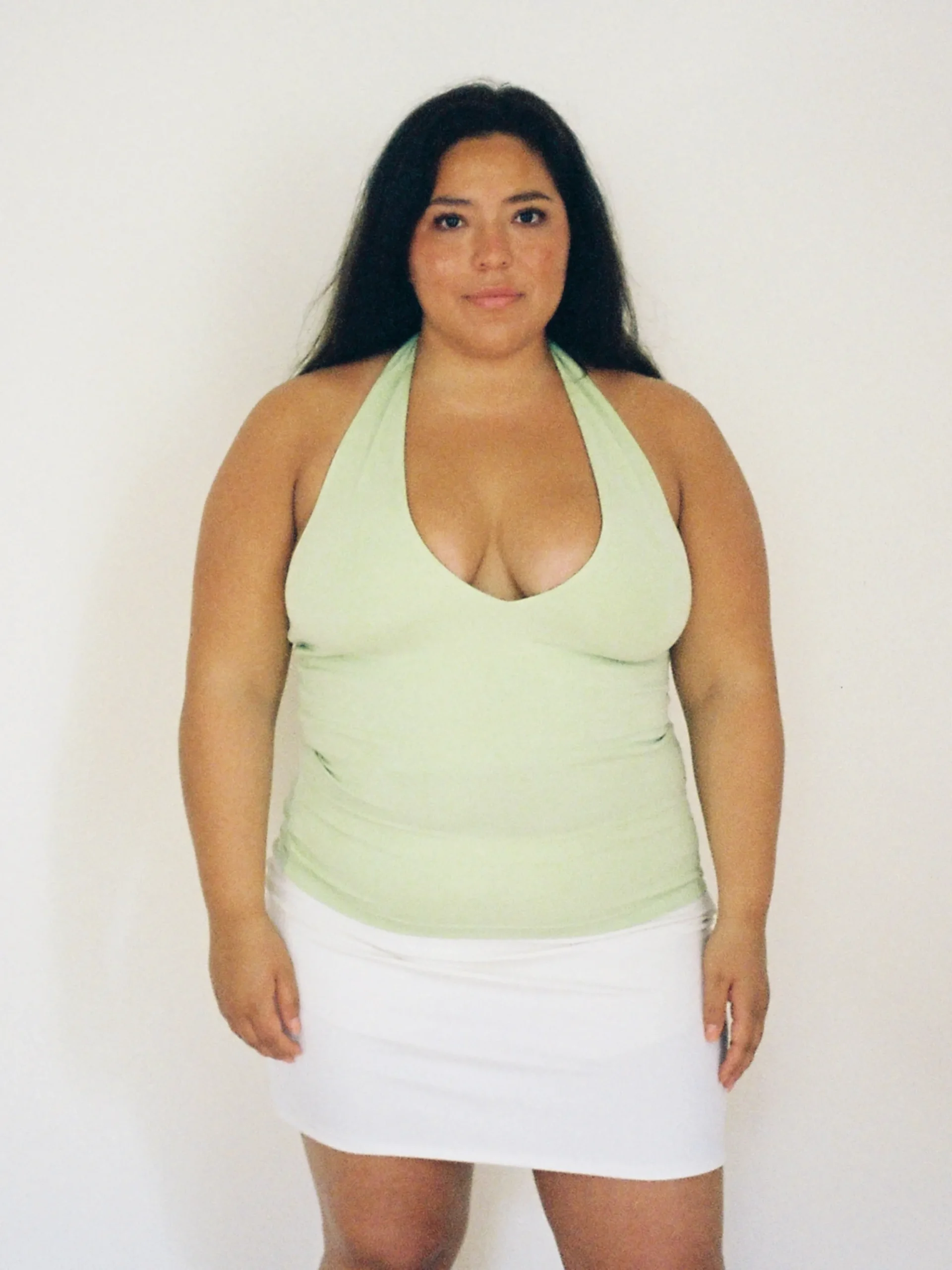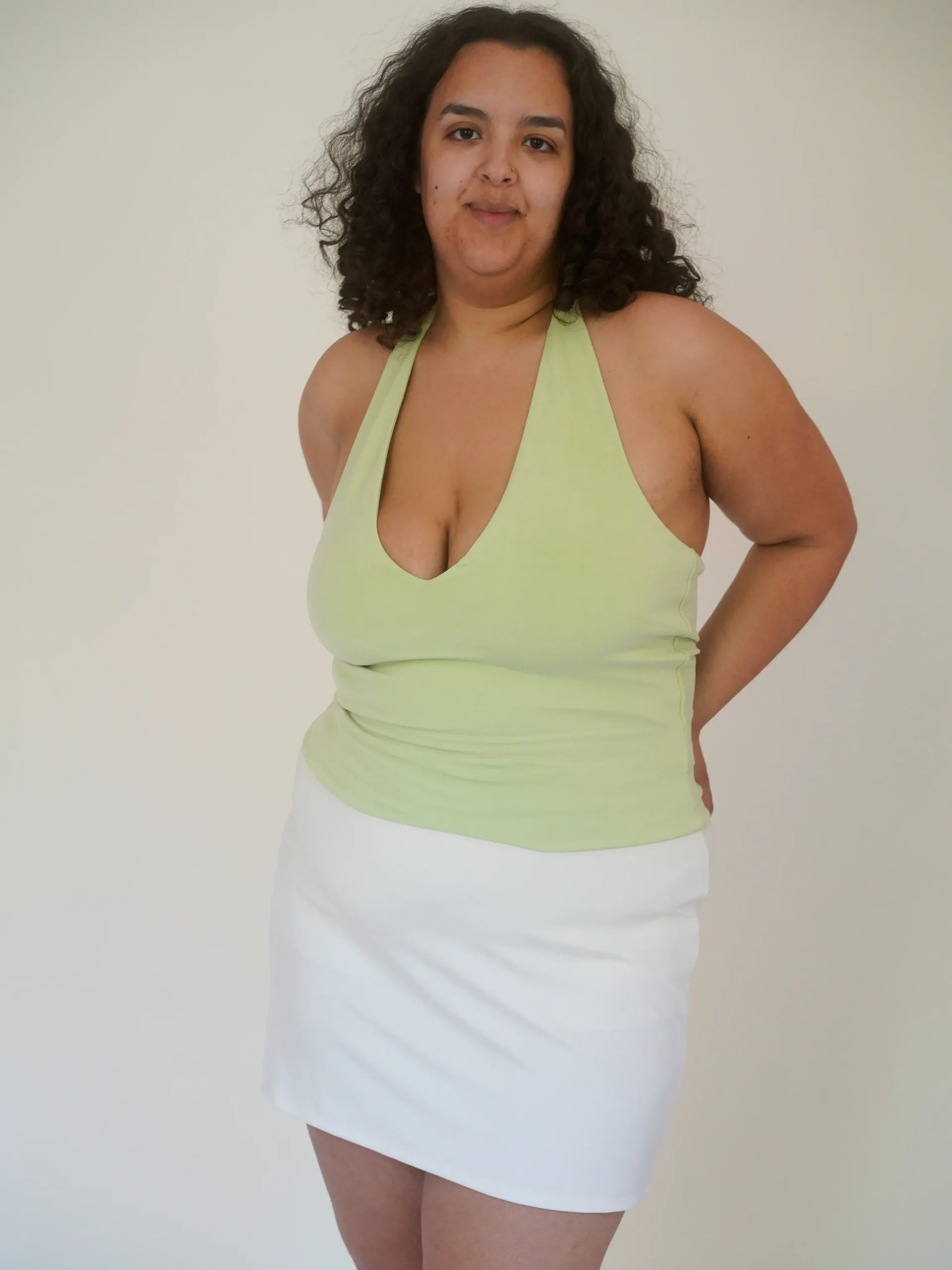 A classic halter neck top, made in a peachy TENCELâ„¢ Lyocell fabric. It has a deep V neckline and a double layer of fabric for support and for the possibility to wear without a bra underneath. We love to wear this top for that extra pop of color!