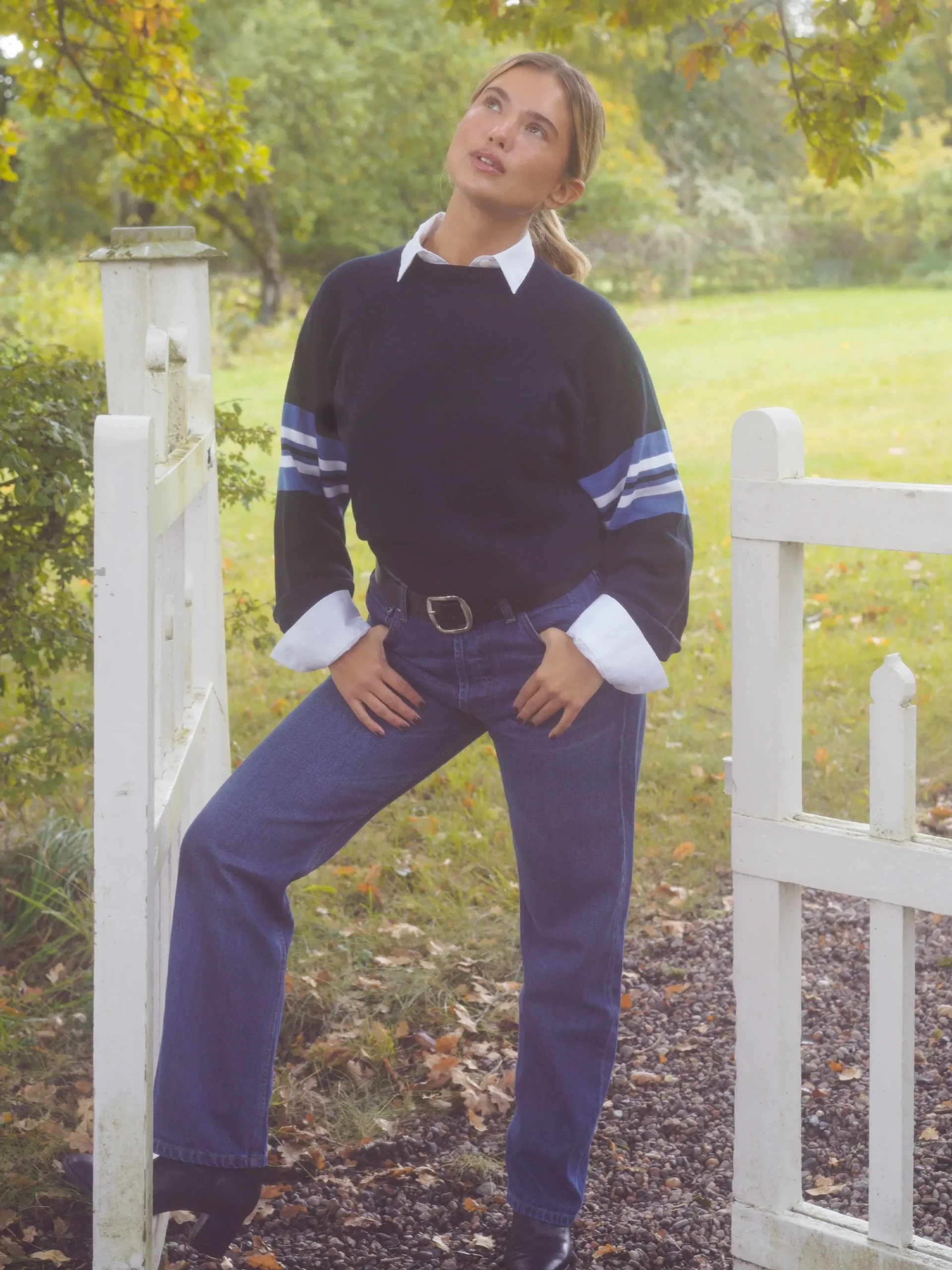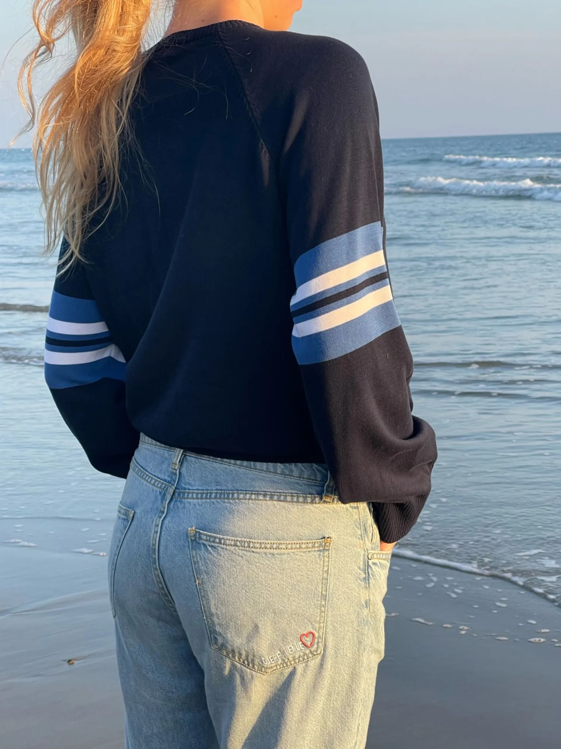 Clearance Djerf Avenue Striped Sleeve Crewneck Blue
