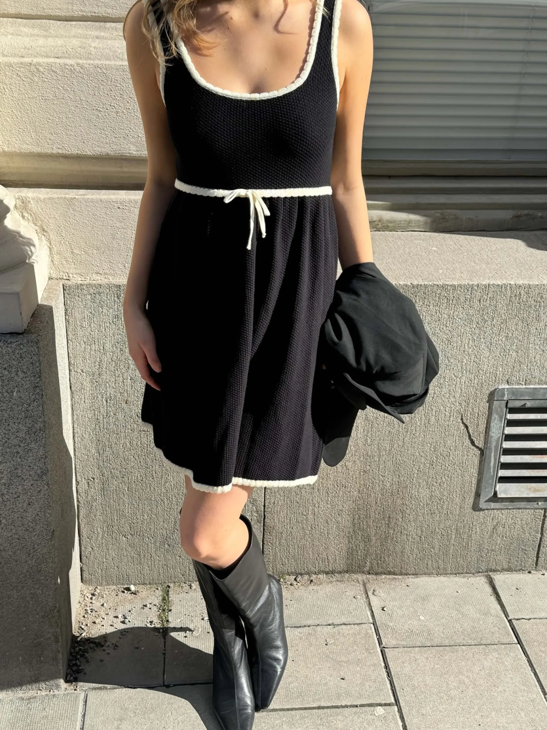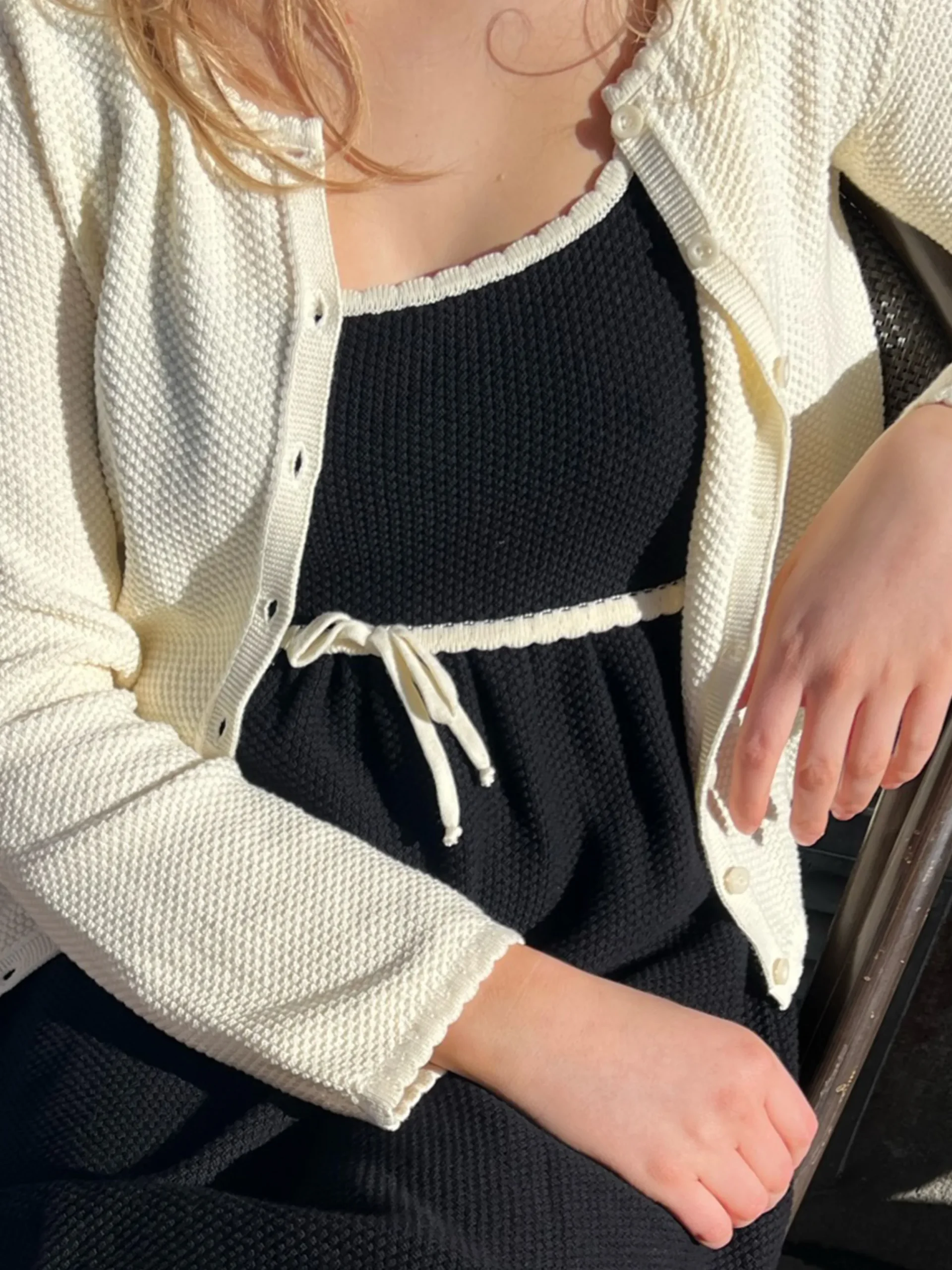A mini dress in the same knitted structure as our Principessa Skirt, Amorini Top, Skirt and Cardigan. It has contrast co…
