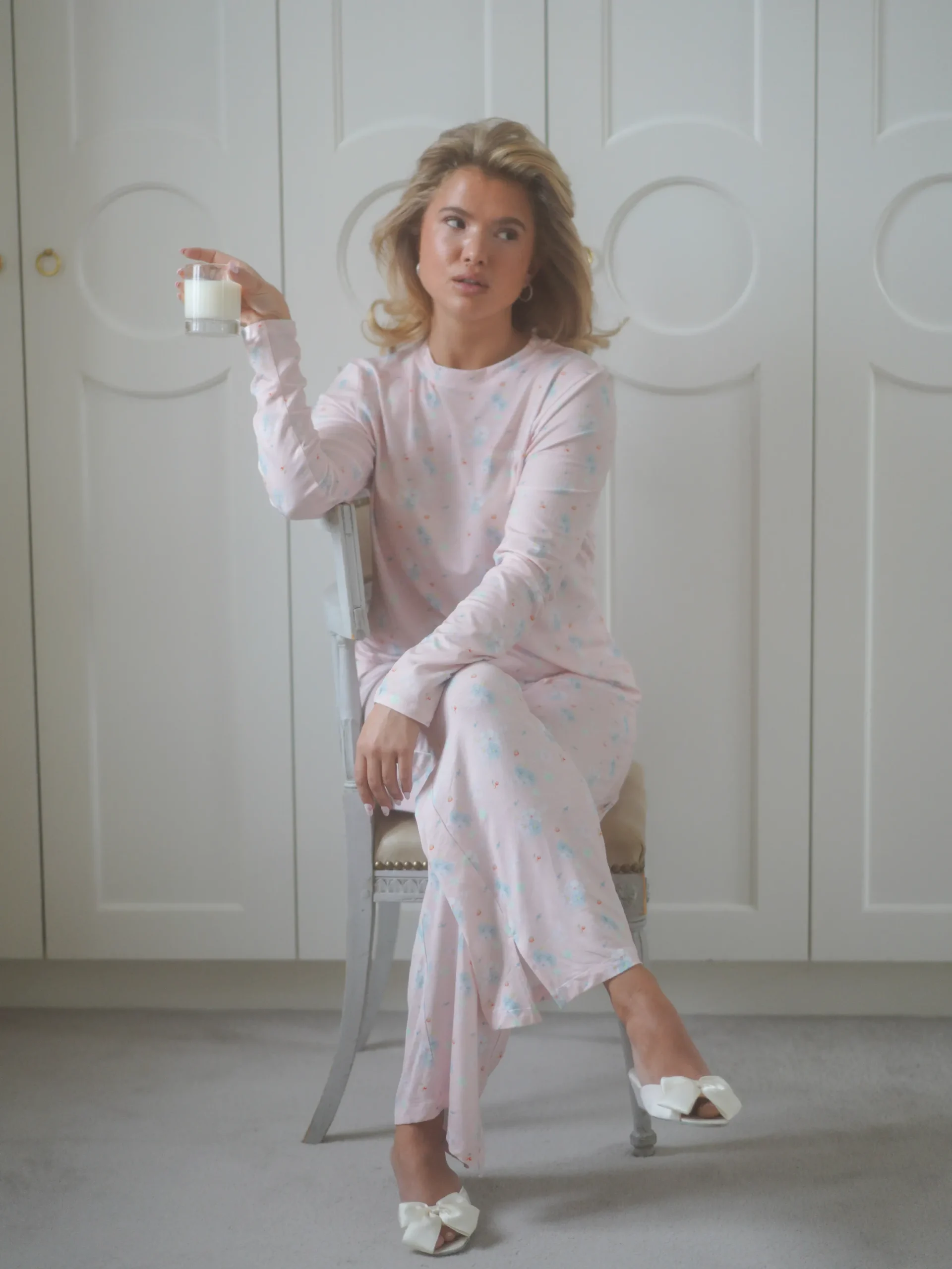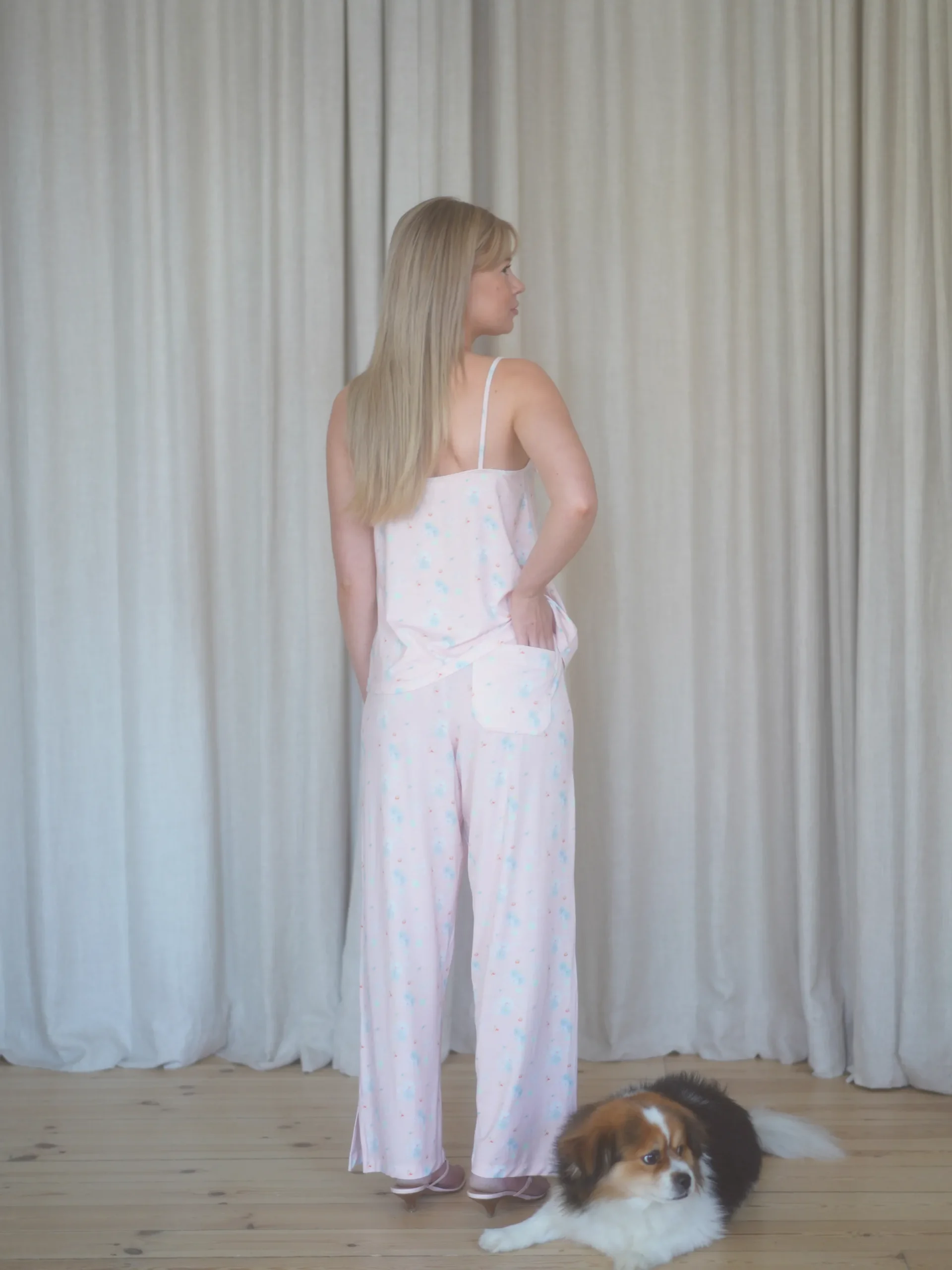 The Go Slow PJ Ankle Pant is made in a soft TENCELâ„¢ Lyocell fabric and features our unique hand-made prints. They have an ankle length which is perfect for a cozy day at home, with a little slit at the bottom side. They also have a back pocket with an embroidered Djerf Avenue logo.Copyrighted print