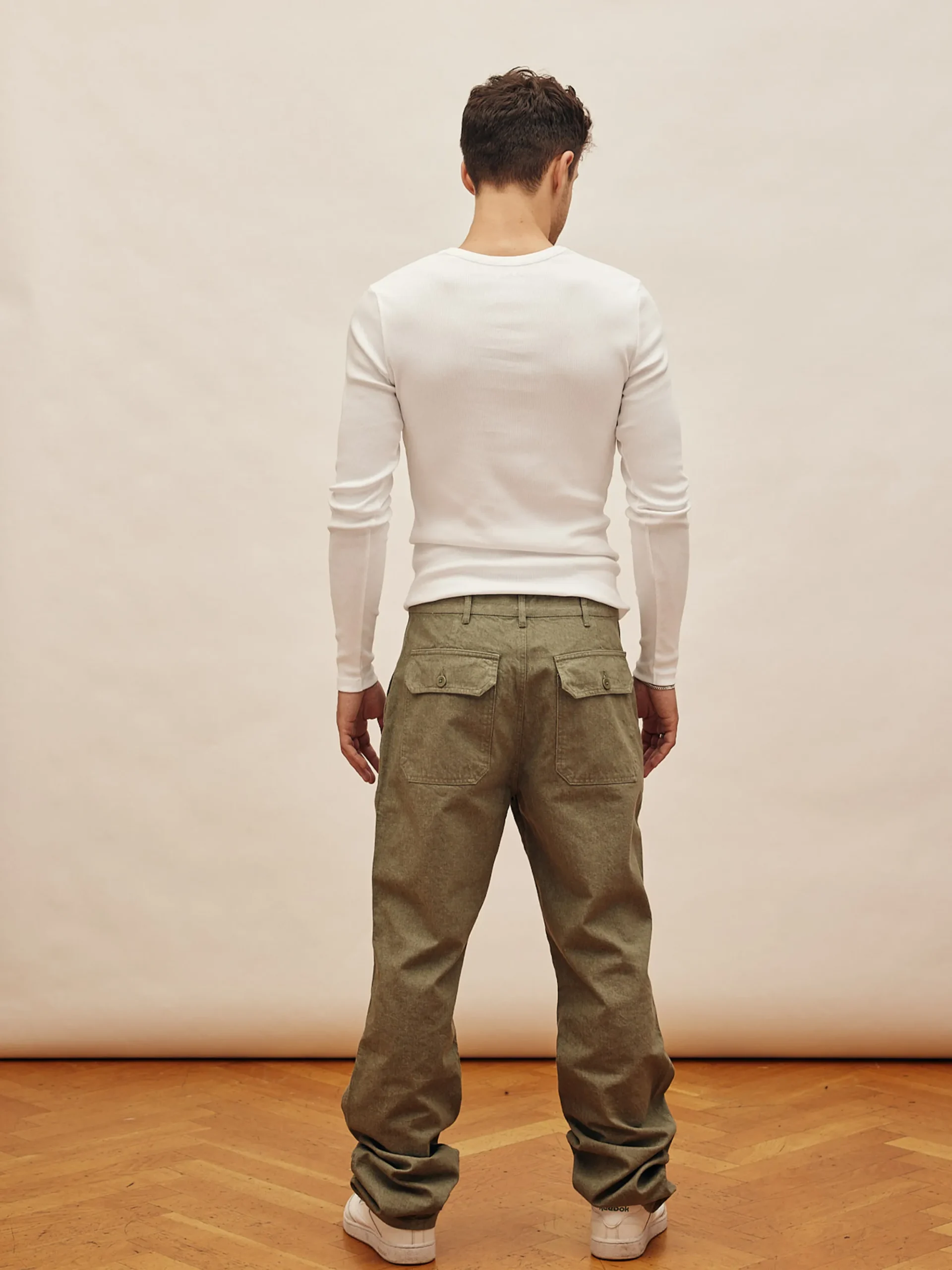 Our Go to pants have a loose, straight fit and are made from a thick cotton fabric. They have two front pockets and two …