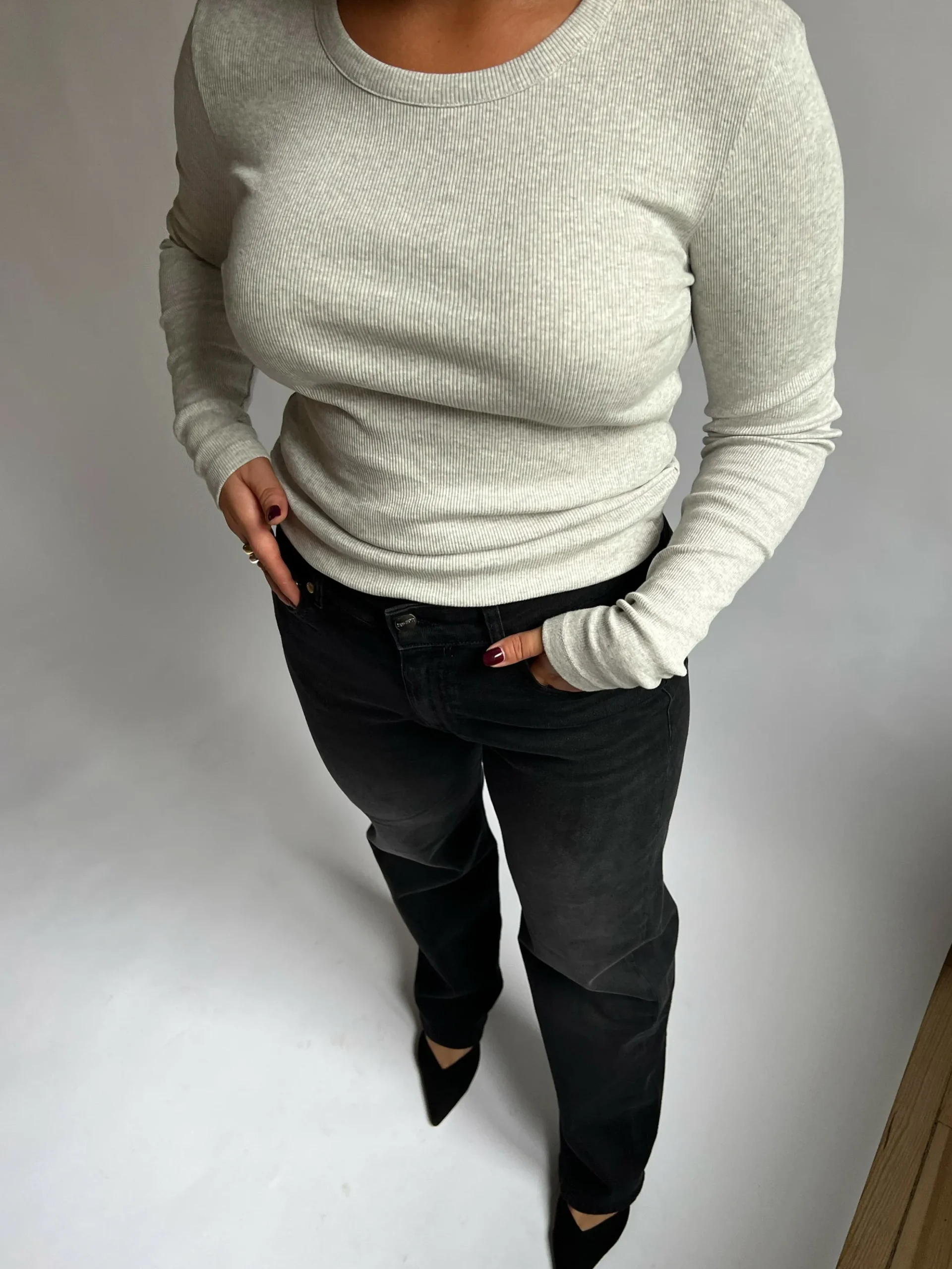Flash Sale Djerf Avenue Daily Long Sleeve Top Ribbed Grey Melange