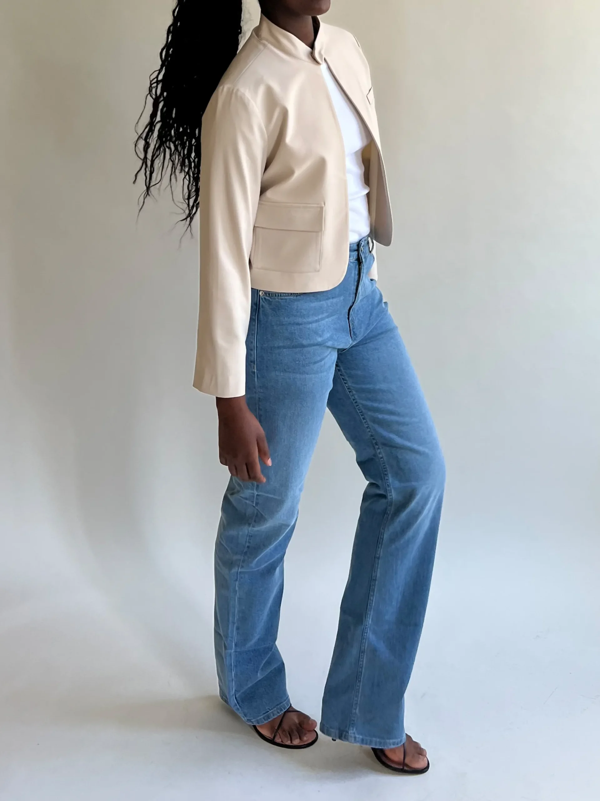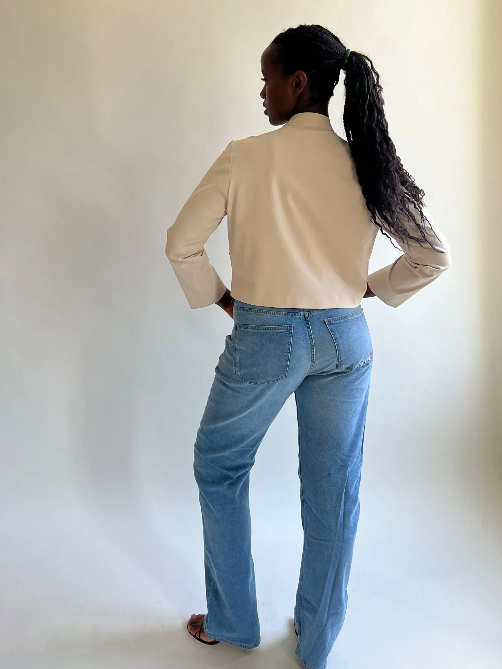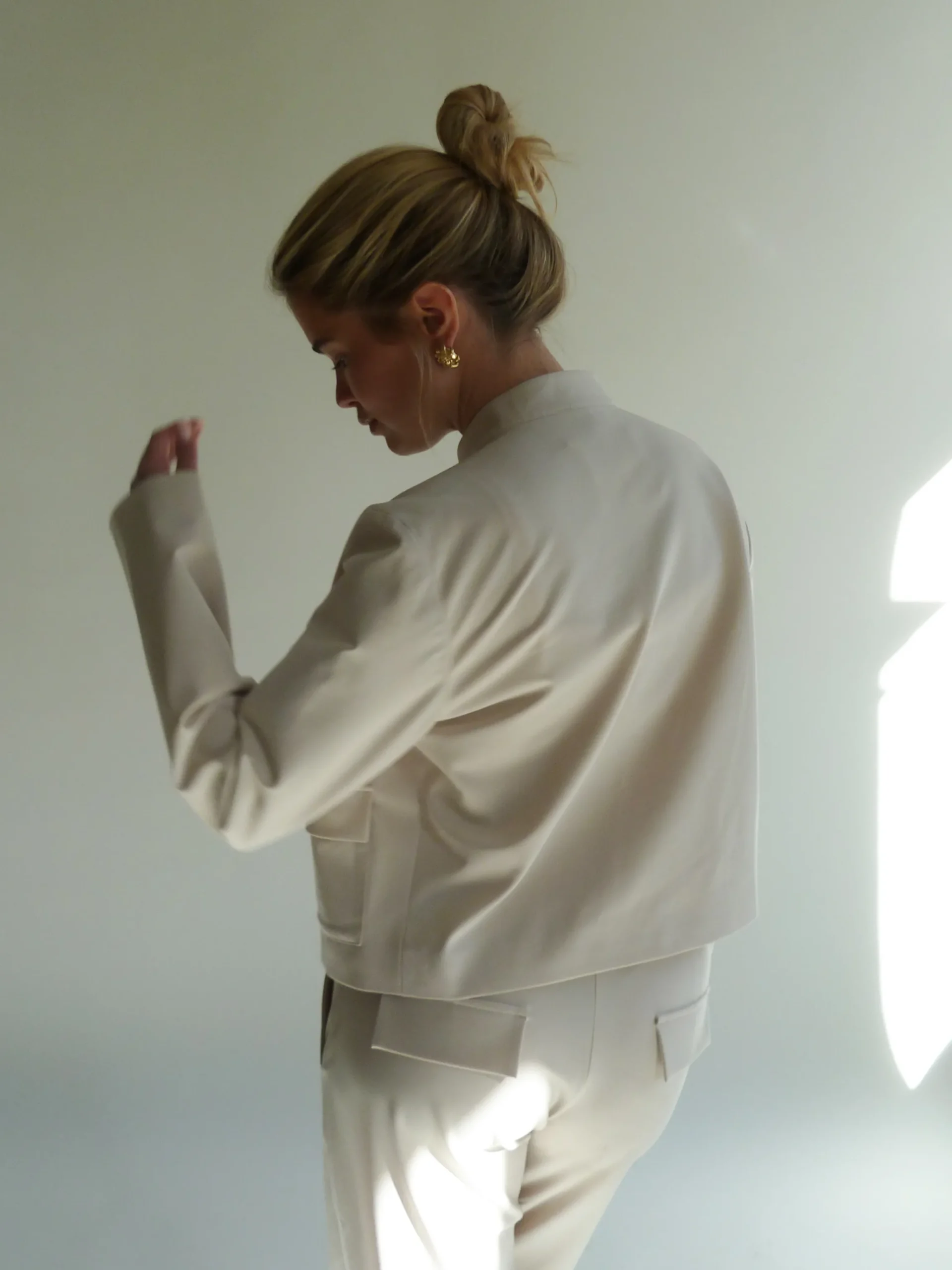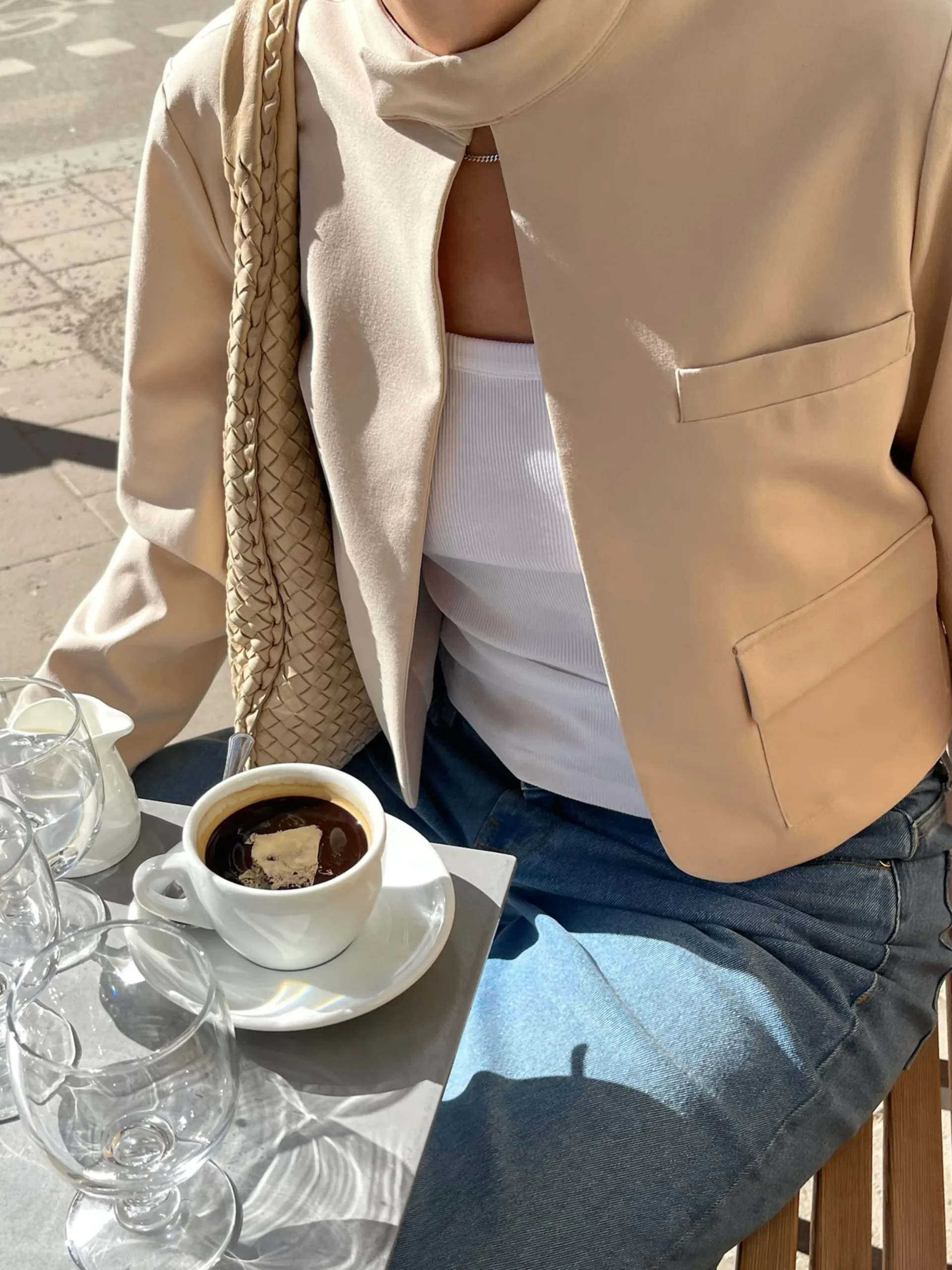 This jacket is the perfect indoor/outdoor style to put over your basics or a shirt when you need an extra layer. It has an open design in the front that can be closed with one button at the neck and it has a straight fit to the body. We love to wear it together with the matching Day-to-day Pants or in a more relaxed combination together with a our Straight or Relaxed Jeans.
