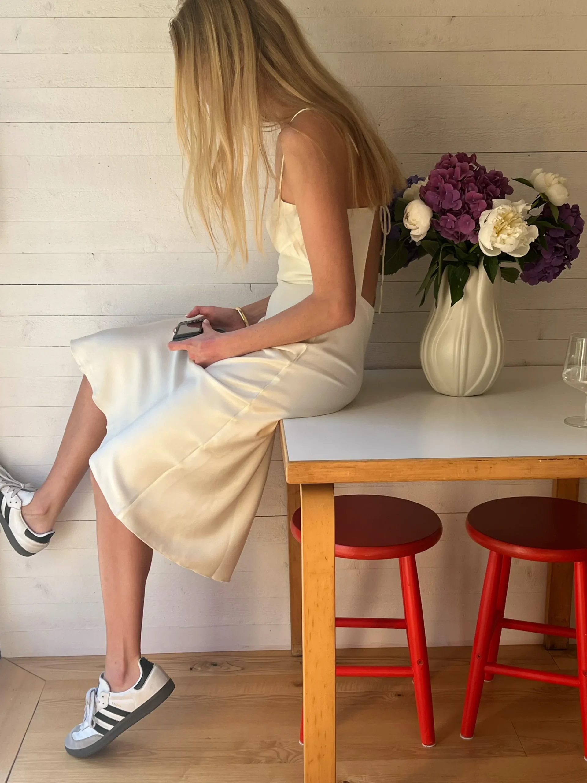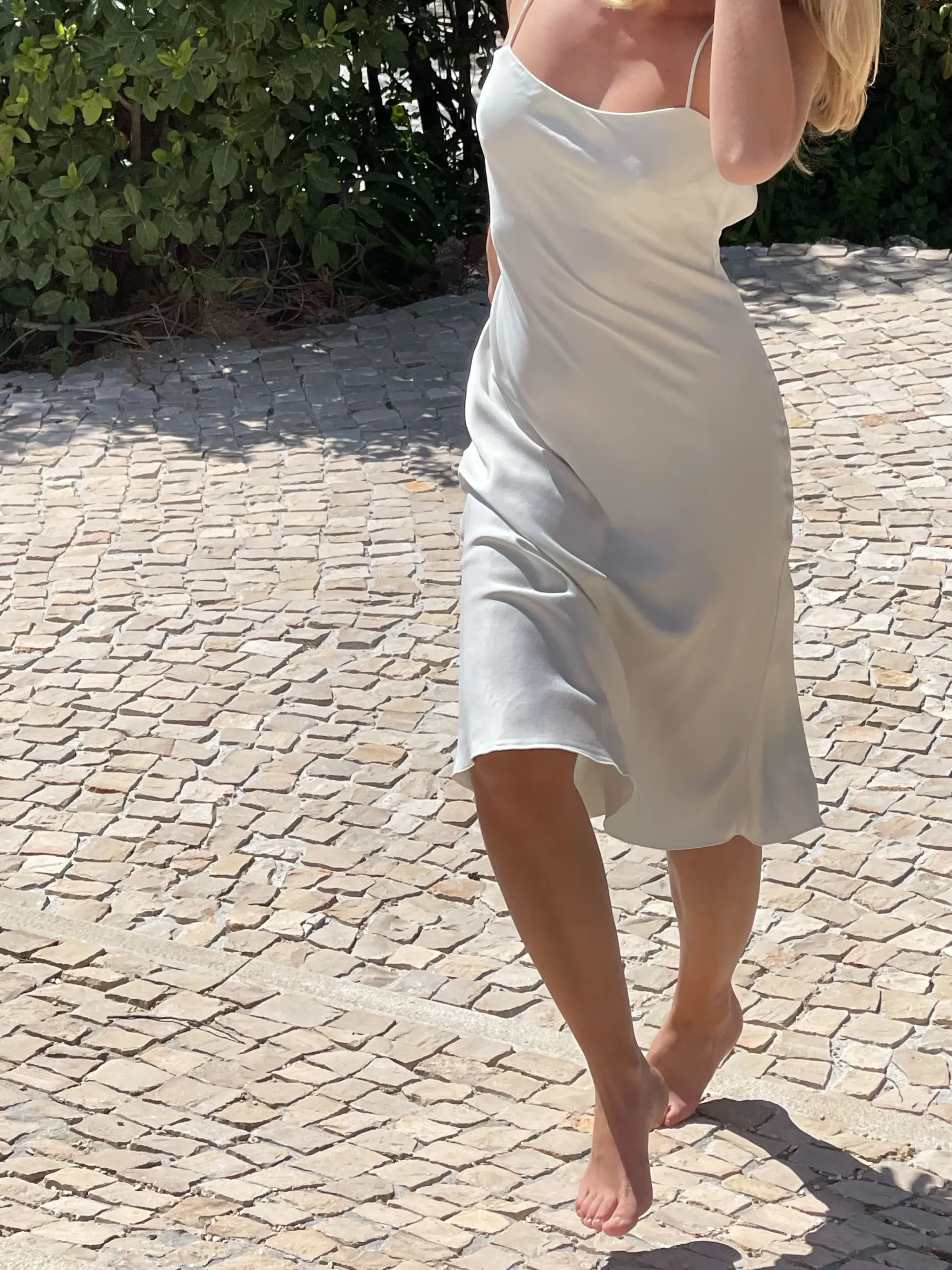 A dress so dreamy we had to call it the Dream Dress! The silky cupro fabric has a wonderful touch with a peachy surface and feels like a warm hug against the body. It has thin spaghetti straps and ties in the back to adjust the width and length of the shoulder straps, as well as an elastic edge at the back for extra comfort. The length is above the knee to suit any occasion, from weddings to picnics and date nights.