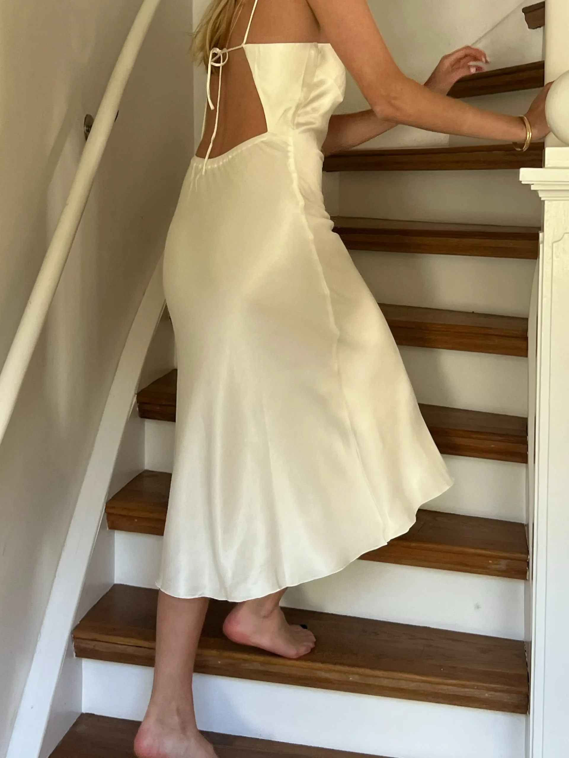 - Spaghetti straps that can be adjusted for desired length