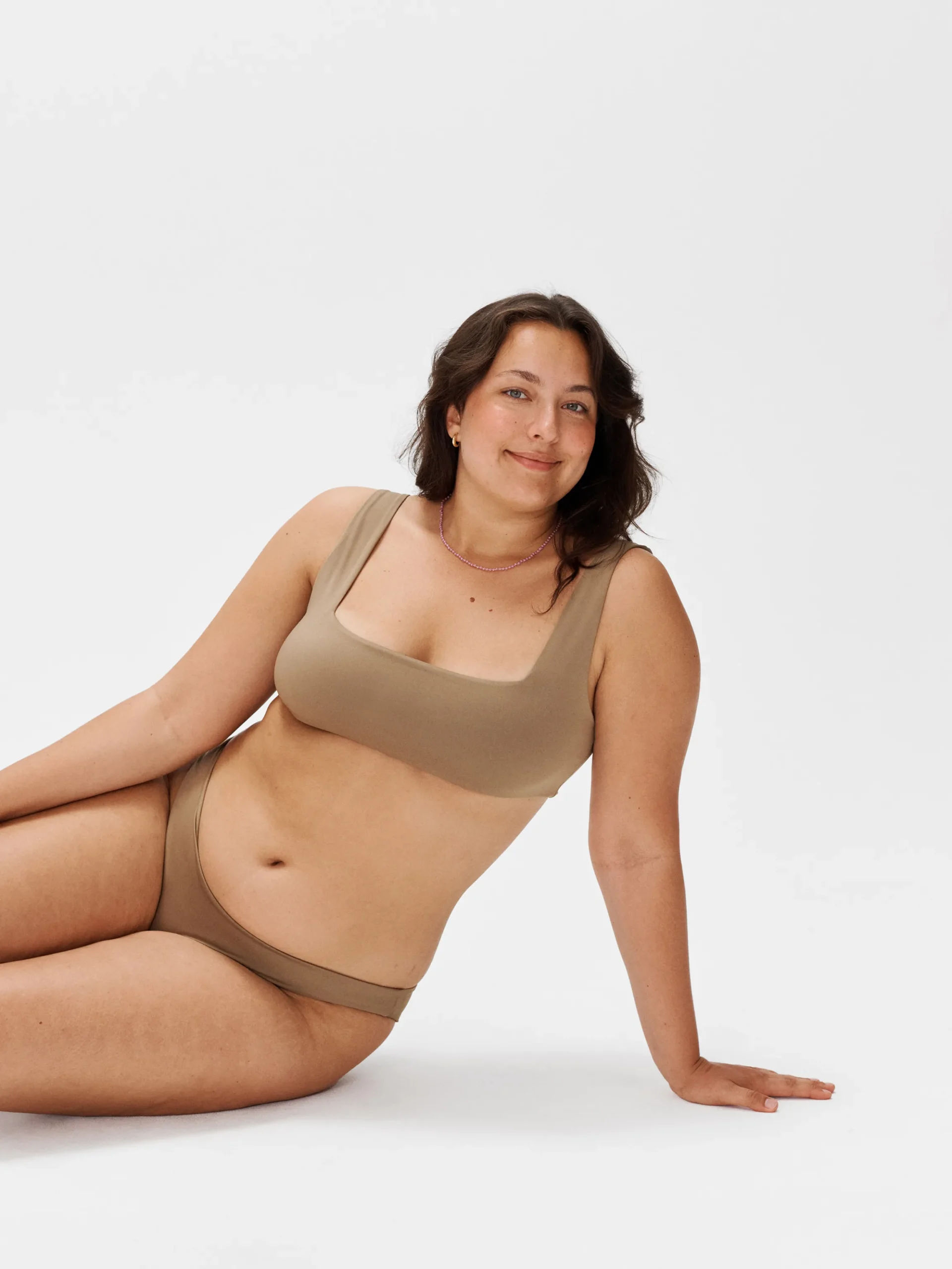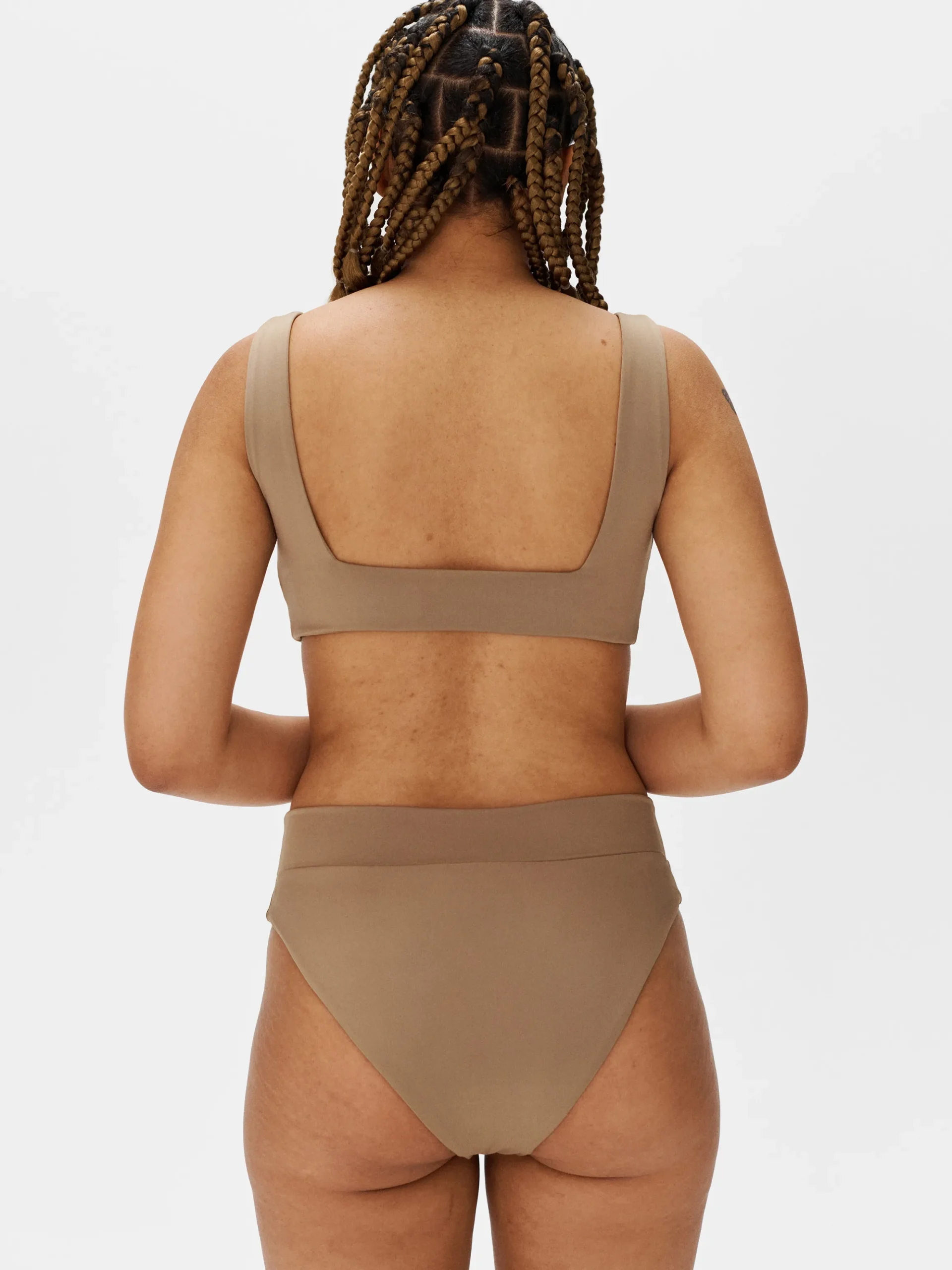 The Square Top has a sporty but minimalistic look with its seamless appearance. All of our swimwear is made in a certified recycled polyester blend from Italy.