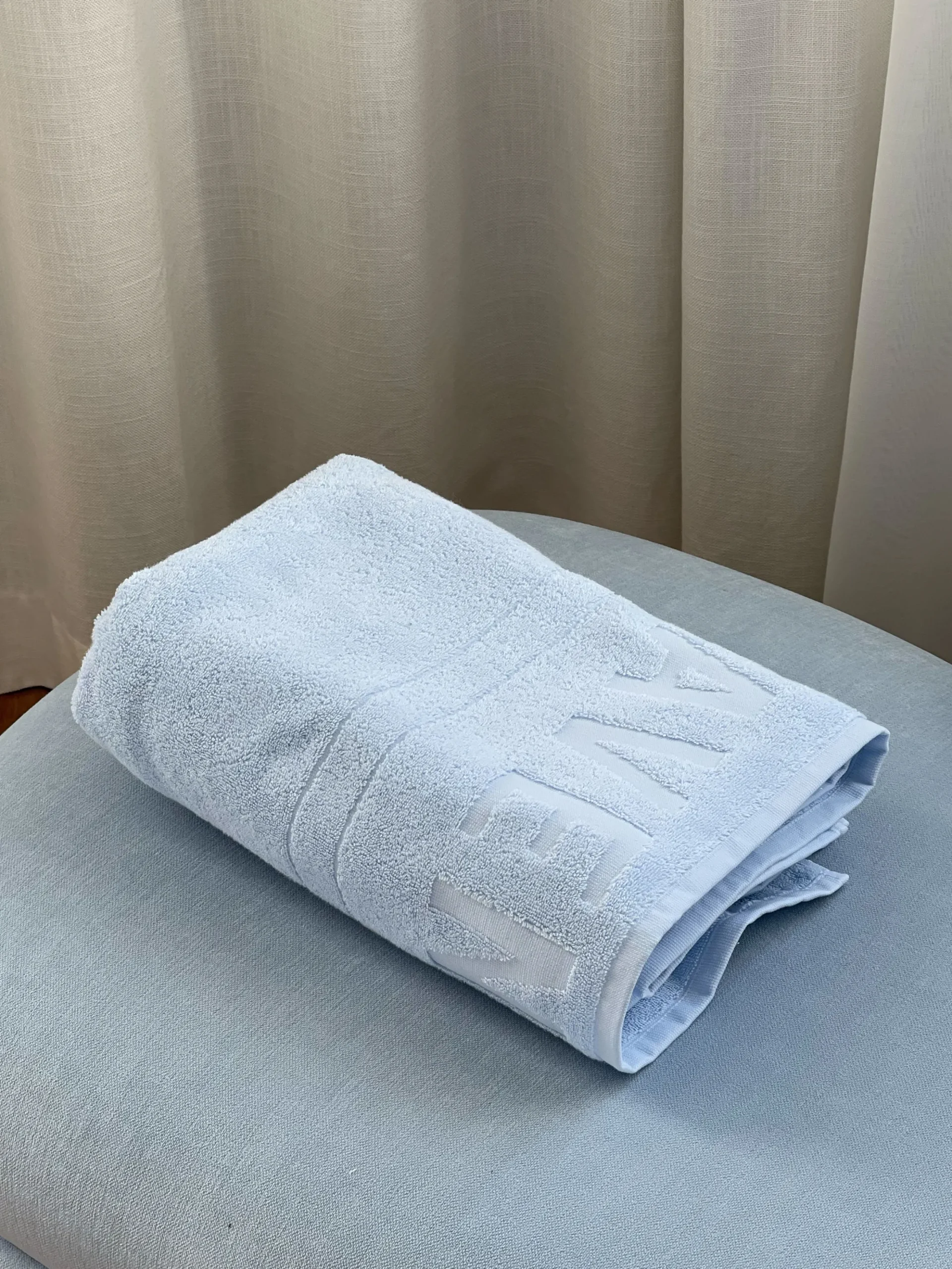 A heavy and fluffy terry towel, perfect to use after a bath or shower, at the beach or on a sunbed by the pool. Jaqcuard weave Djerf Avenue logo at short sides. Made in a GOTS certified organic cotton.