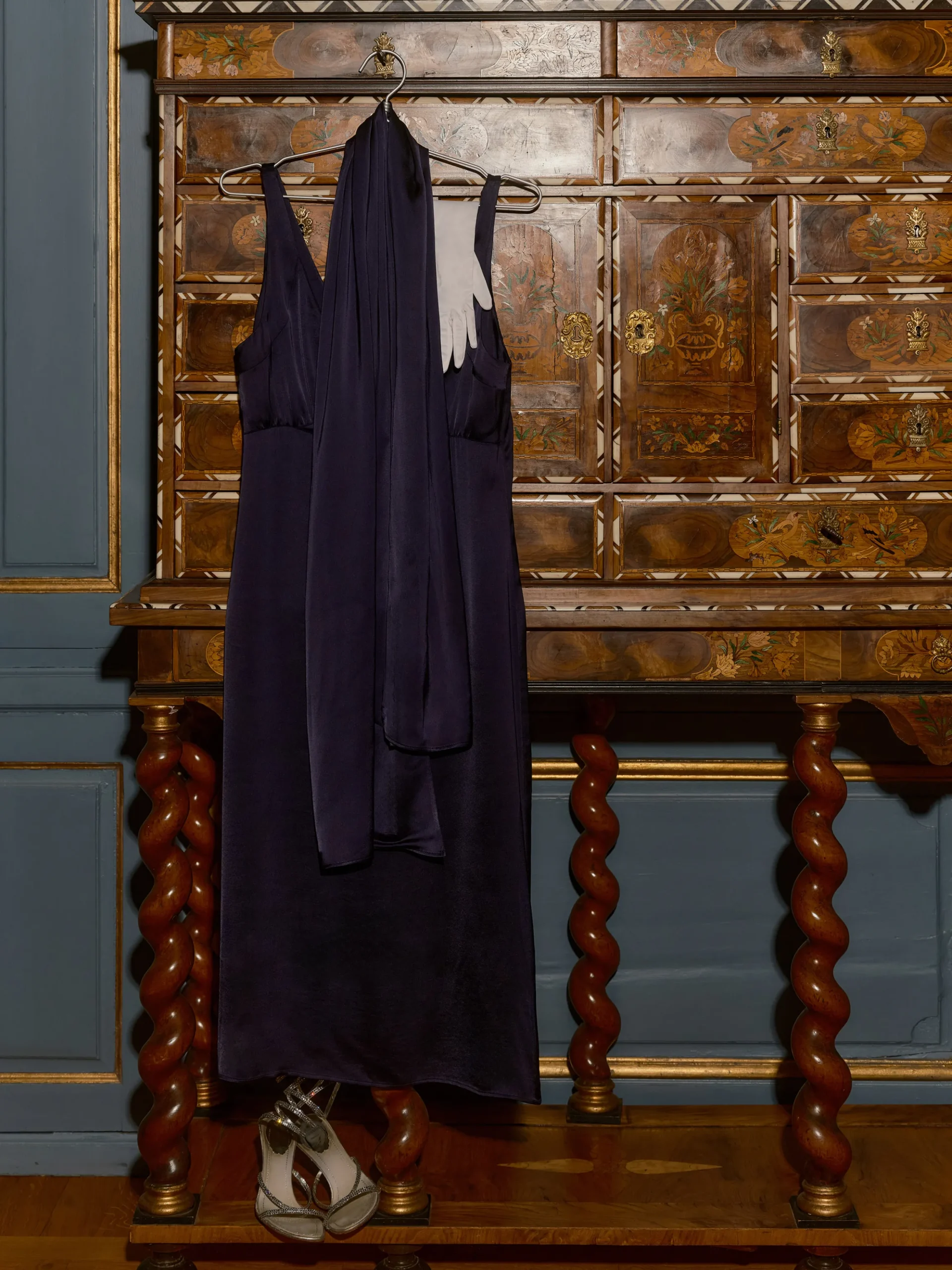 Made from the same beautiful viscose satin fabric as our Evening Midi Dress, this scarf is elegantly designed to complement that dress or to be thrown over a different top or blouse. It features a shiny front side and a matte back side, adding an extra dimension to its minimalistic appearance.