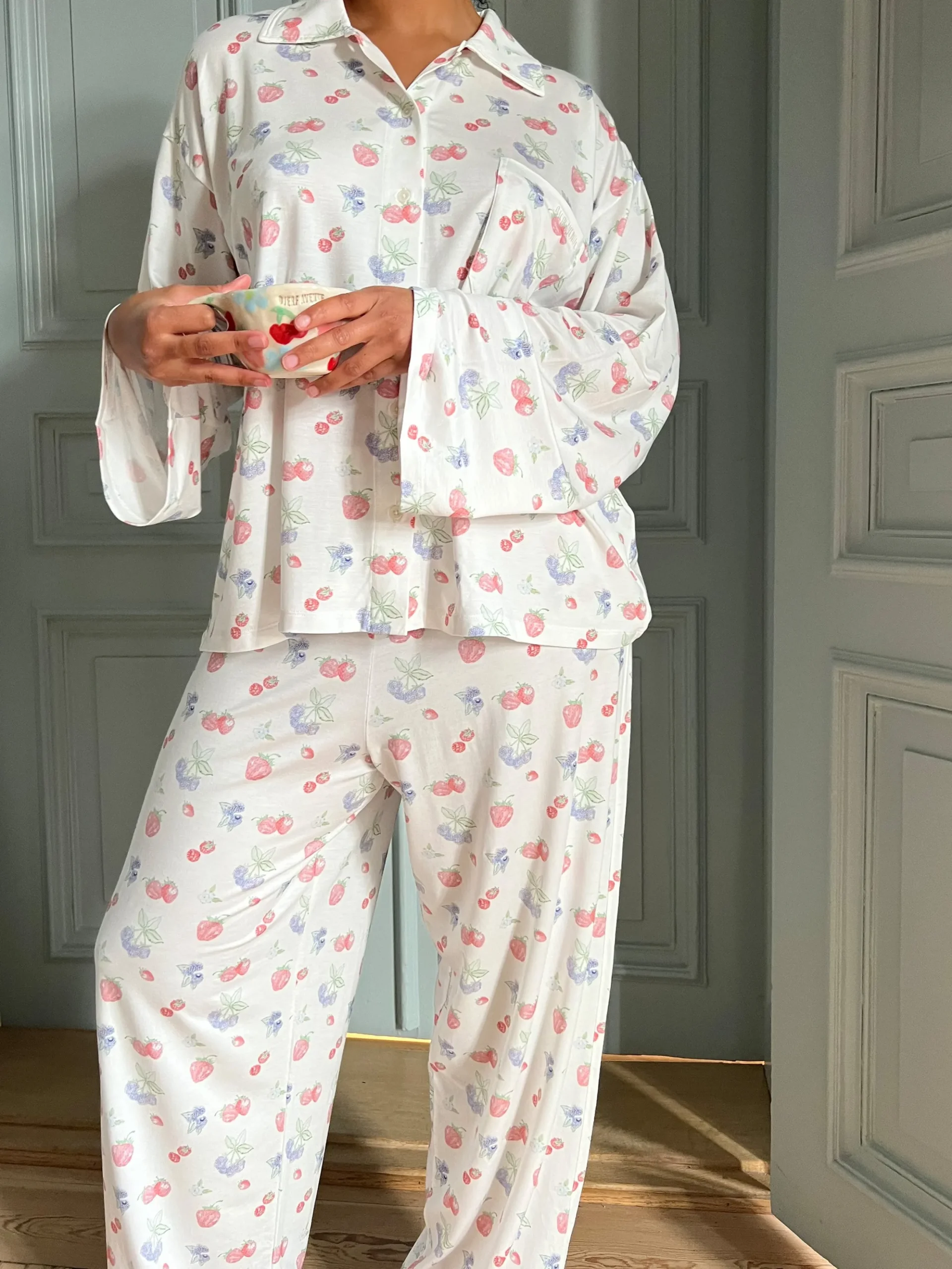 Our Go Slow Pants are beyond comfy, they are a perfect addition to your all day uniform on a slow day at home, or when you wind down after a long day. These pants are not only super soft but also thin, stretchy and breezy. Wear them together with our matching Go Slow Shirt for the whole pyjamas look!Copyrighted print