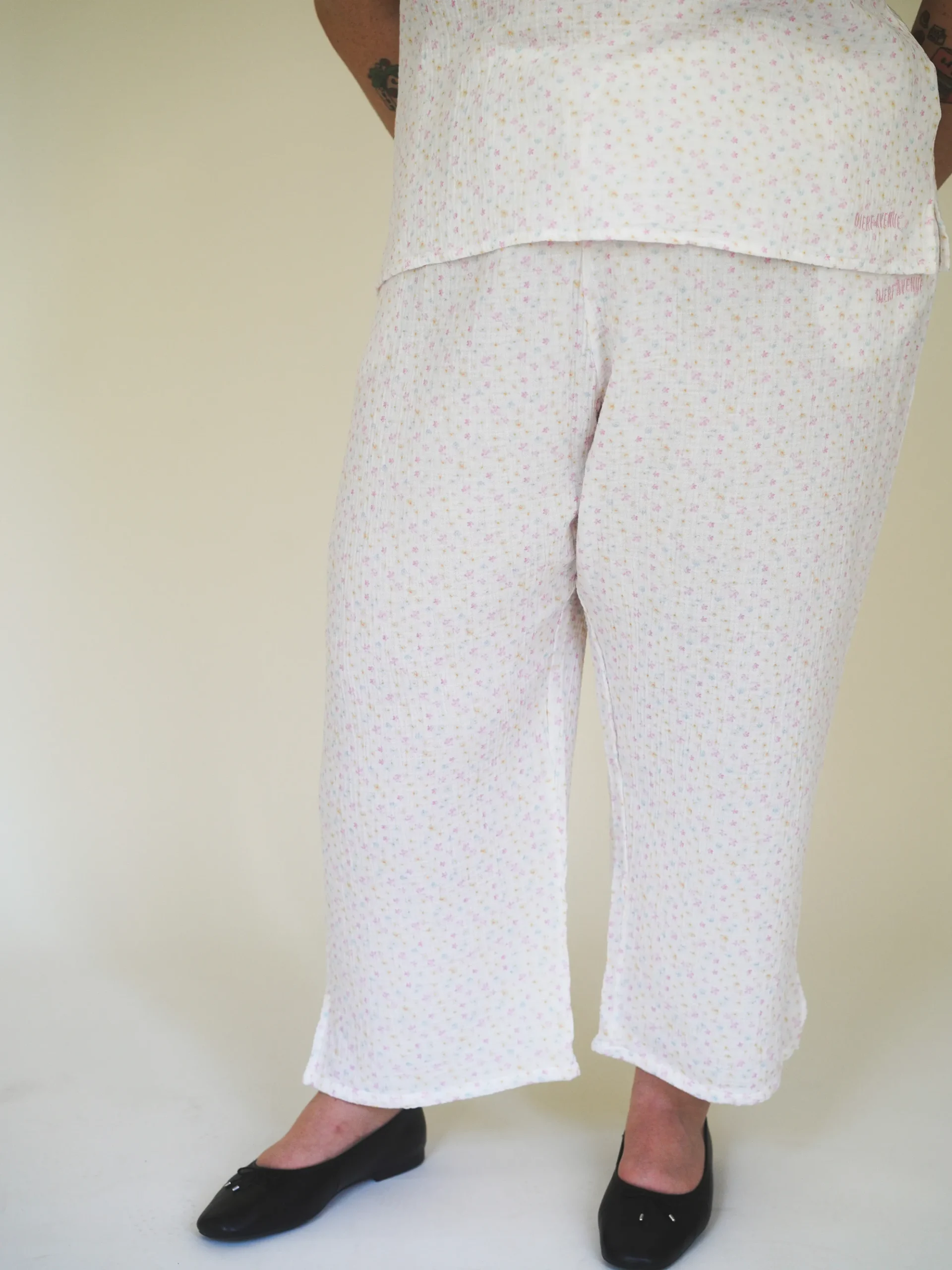 A relaxed and airy pair of ankle length pants, made in a super soft organic cotton muslin fabric. The drawstring waist c…