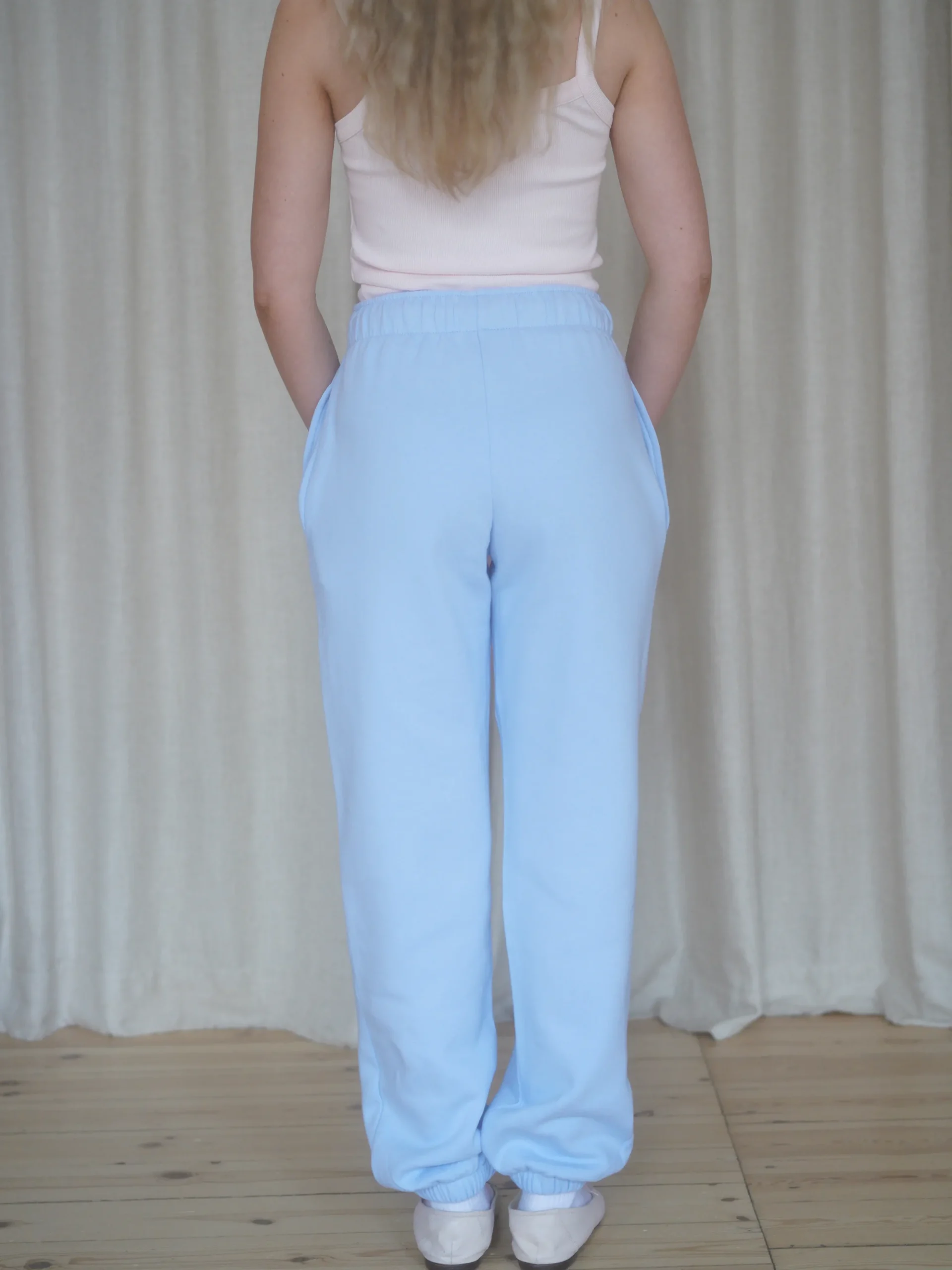 The Staple Sweatpants in certified organic cotton are the perfect pair of pants to wear at home together with the Staple Sweatshirt, or when on the run for errands. They have an oversized fit with drawstrings at the waistband and elastics at waist and leg openings. They also have pockets at the sides and an embroidered Djerf Avenue logo at the front. The pants work perfectly unisex so you can match with your family, partner, or bestie.