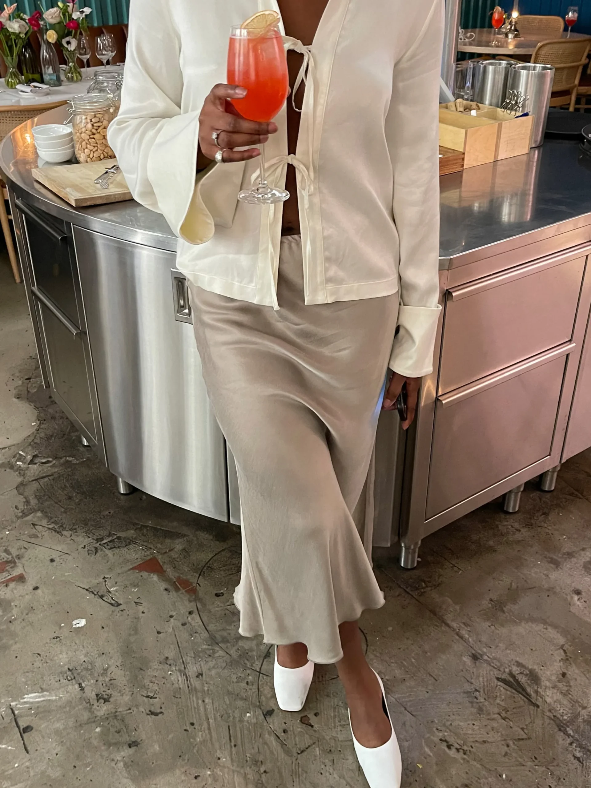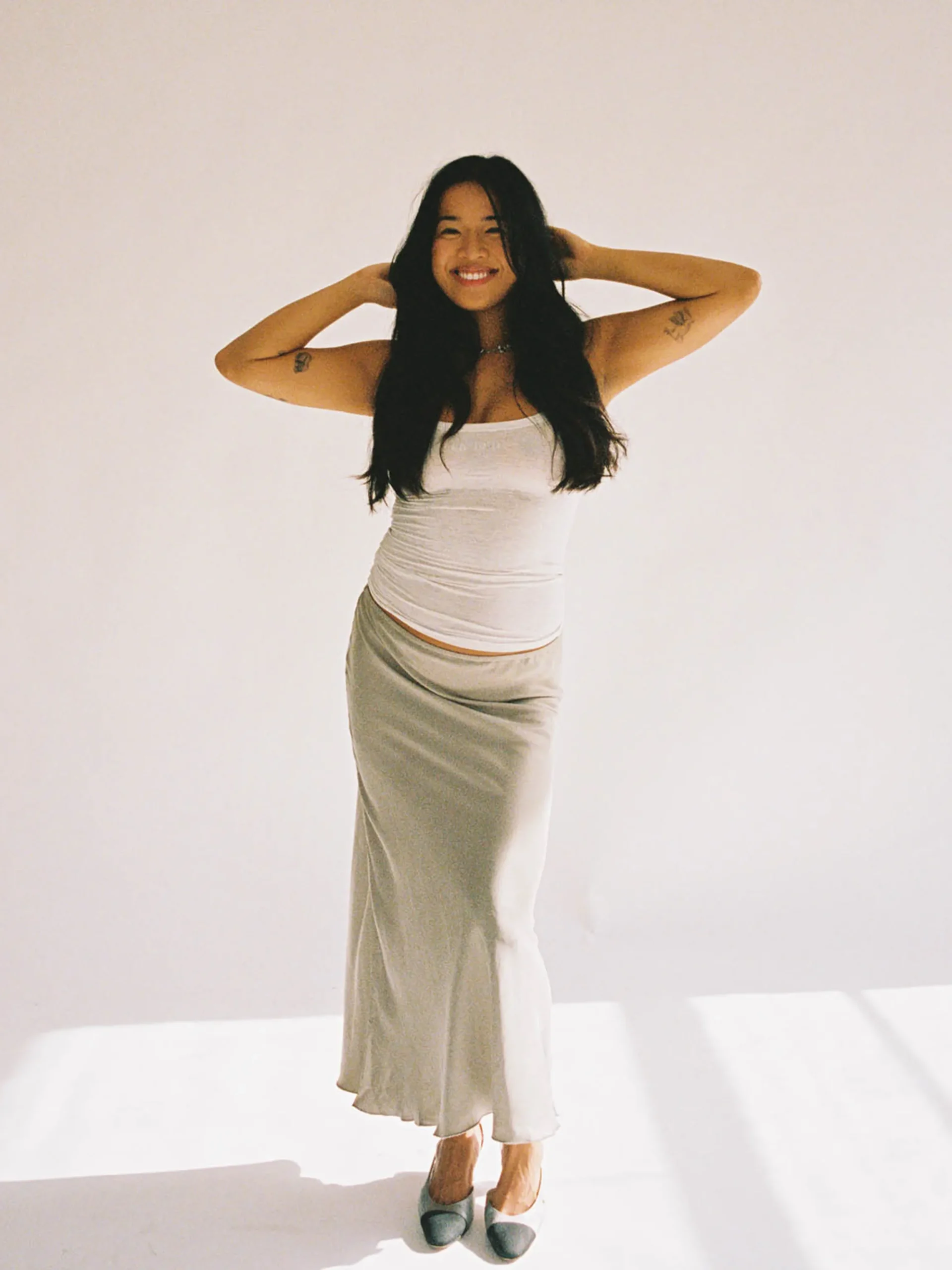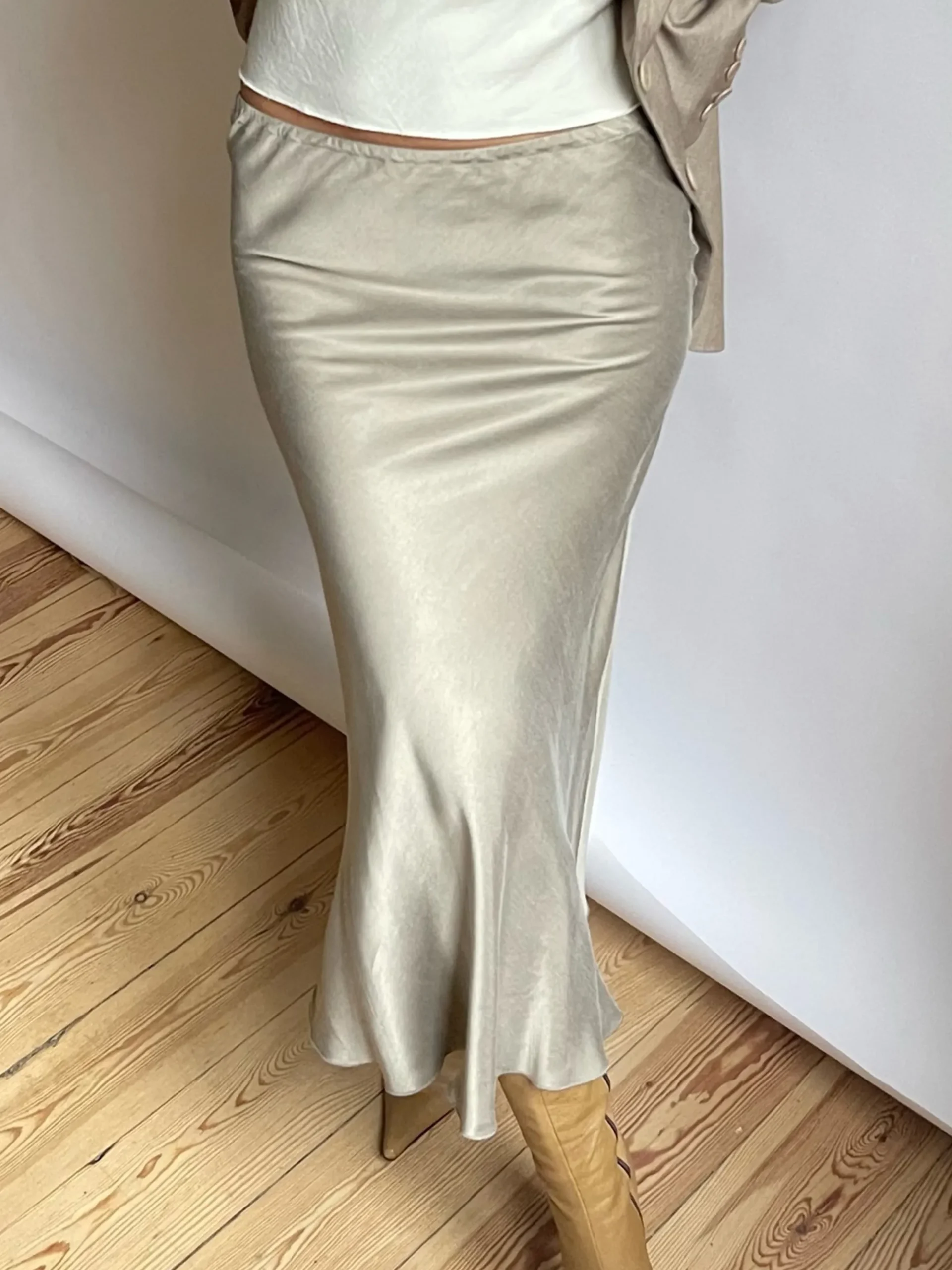 Our Dream Midi Skirt is slightly flared with an elastic waistband and is made to accompany you every season, to every oc…