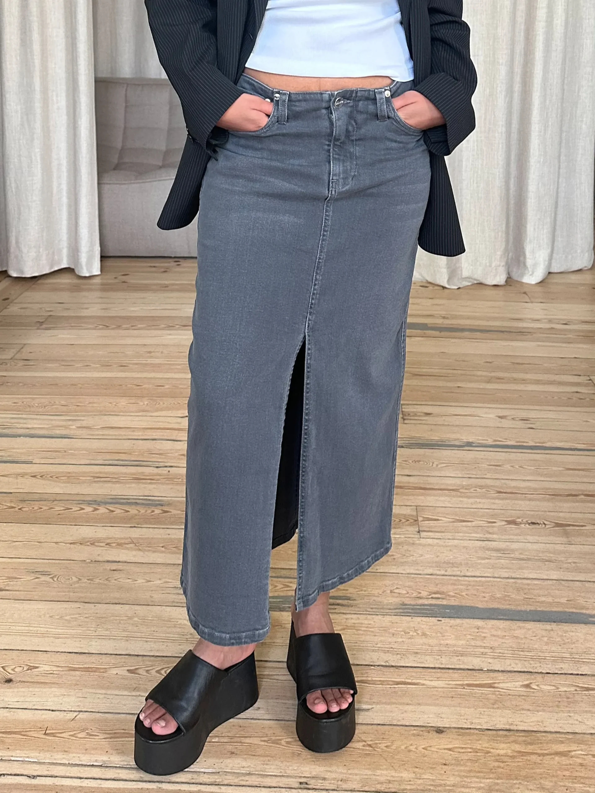 Online Djerf Avenue Denim Skirt Midi Washed grey