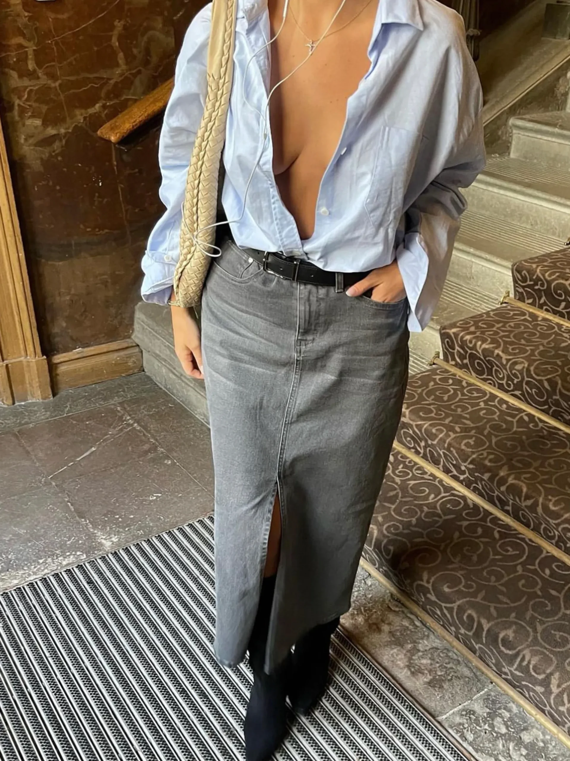 We are so excited about our Denim Skirt Midi! As always, we prioritize comfort, so this skirt is made of a soft and stre…