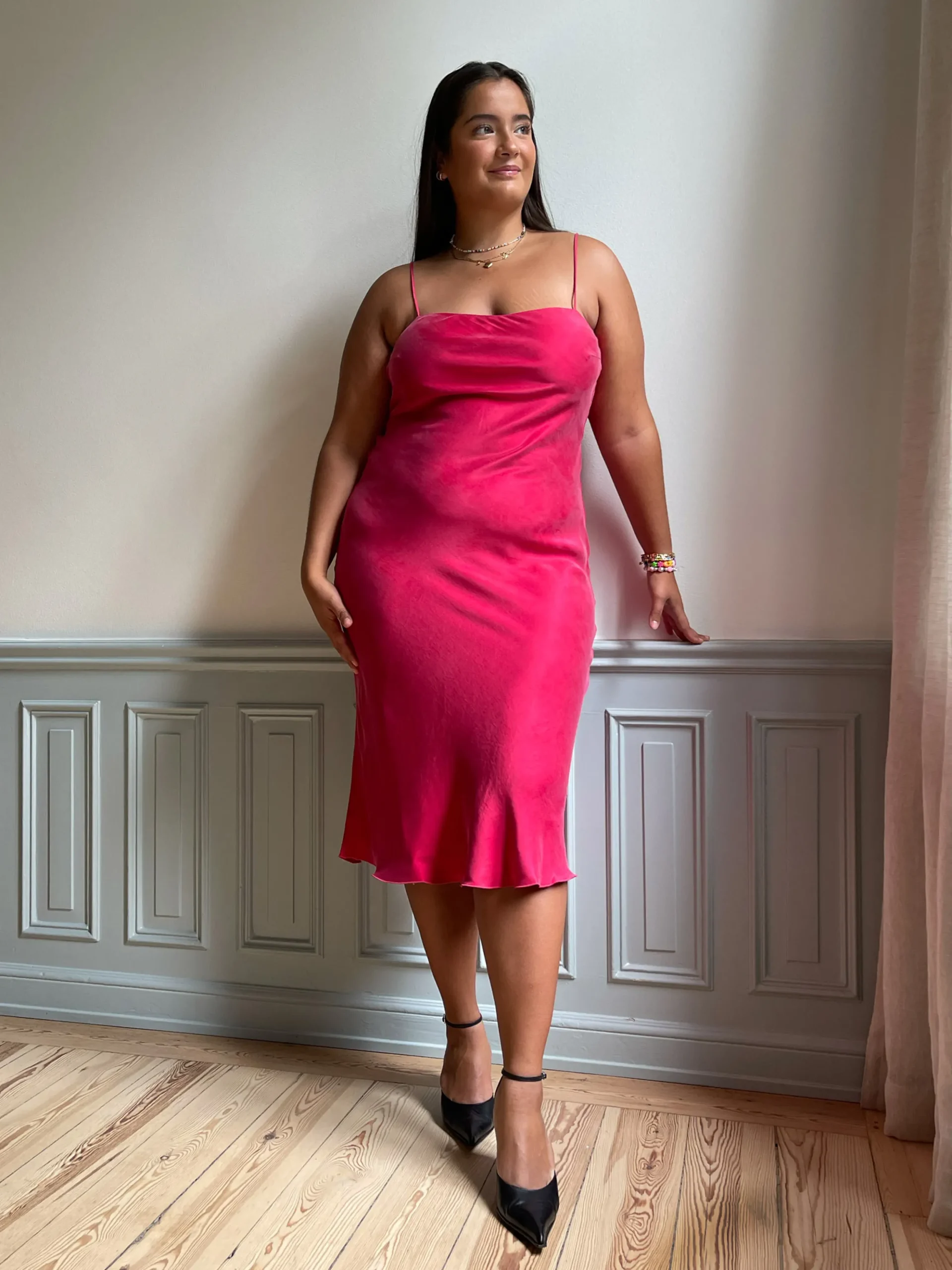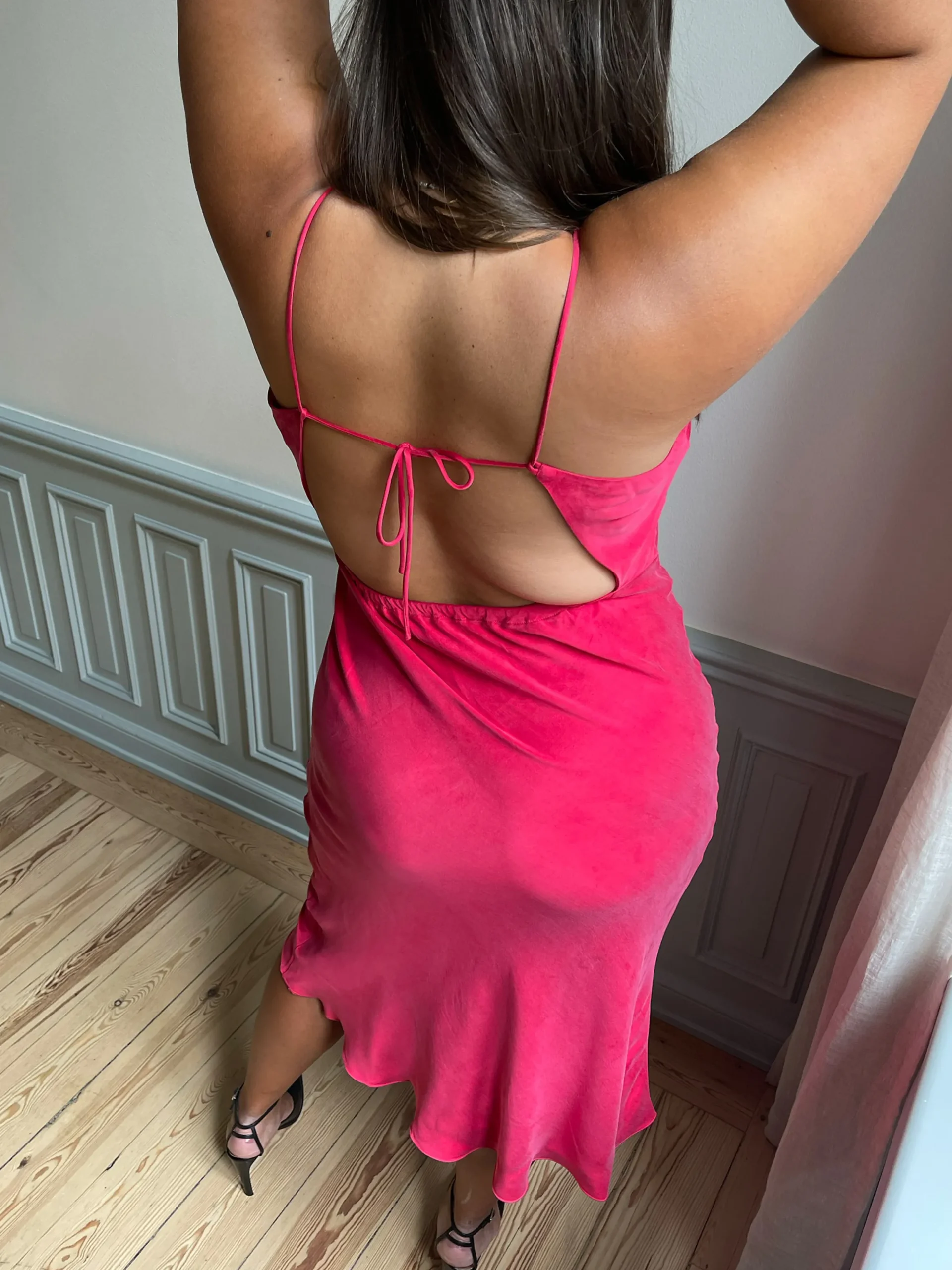 A dress so dreamy we had to call it the Dream Dress! The silky cupro fabric has a wonderful touch with a peachy surface and feels like a warm hug against the body. It has thin spaghetti straps and ties in the back to adjust the width and length of the shoulder straps, as well as an elastic edge at the back for extra comfort. The length is above the knee to suit any occasion, from weddings to picnics and date nights.