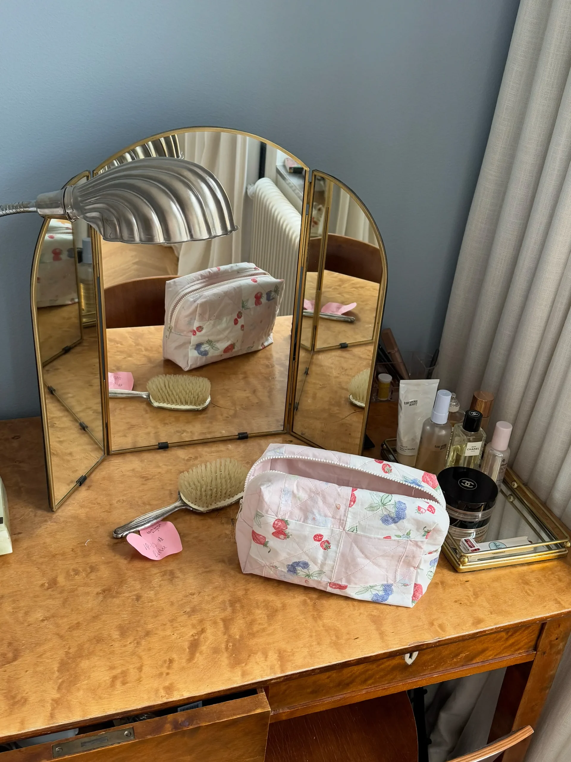 Our Big Patchwork Beauty Bag is made from upcycled pieces of our soft, signature printed sheets, ensuring each bag has its own unique charm. Designed with a spacious interior, it’s ideal for storing all your beauty products, travel necessities, or even as a chic organizer.