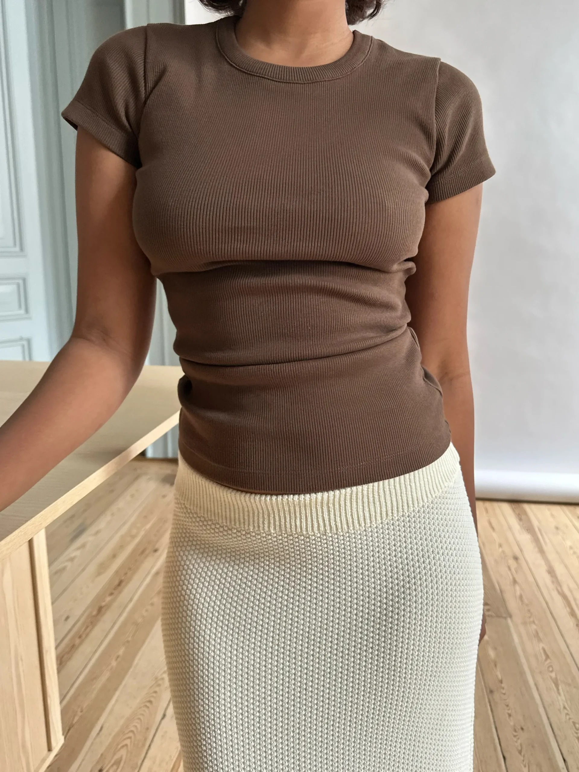 Outlet Djerf Avenue Daily T-Shirt Ribbed Cocoa