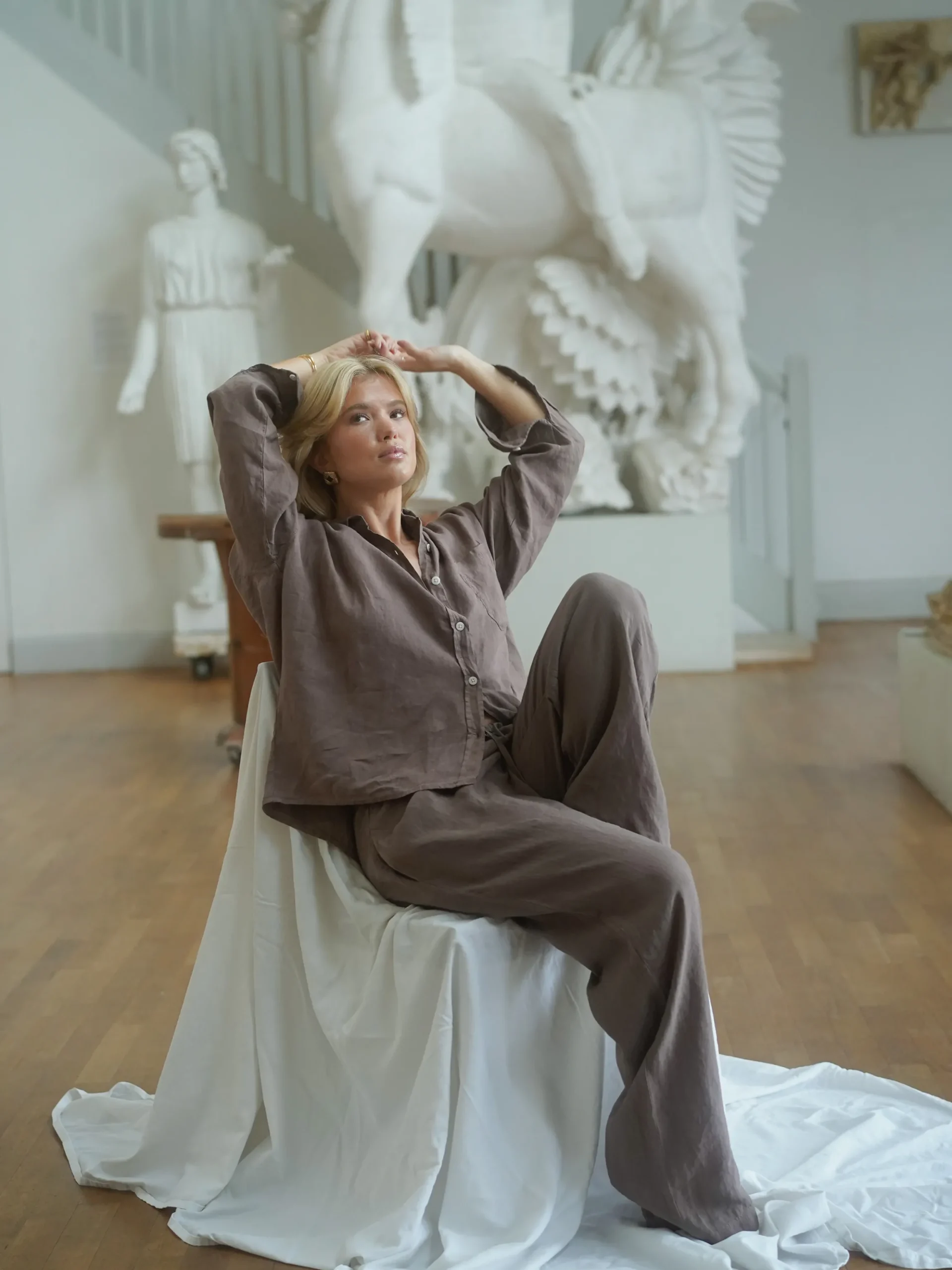 A must-have-item in any wardrobe is the Linen Pants! The relaxed fit and drawstring waist makes them adjustable and comfortable. The natural linen material is breathable and has been pre-washed to prevent it from shrinking. The linen fibers comes from within the EU and is certified with Masters of linen certification.