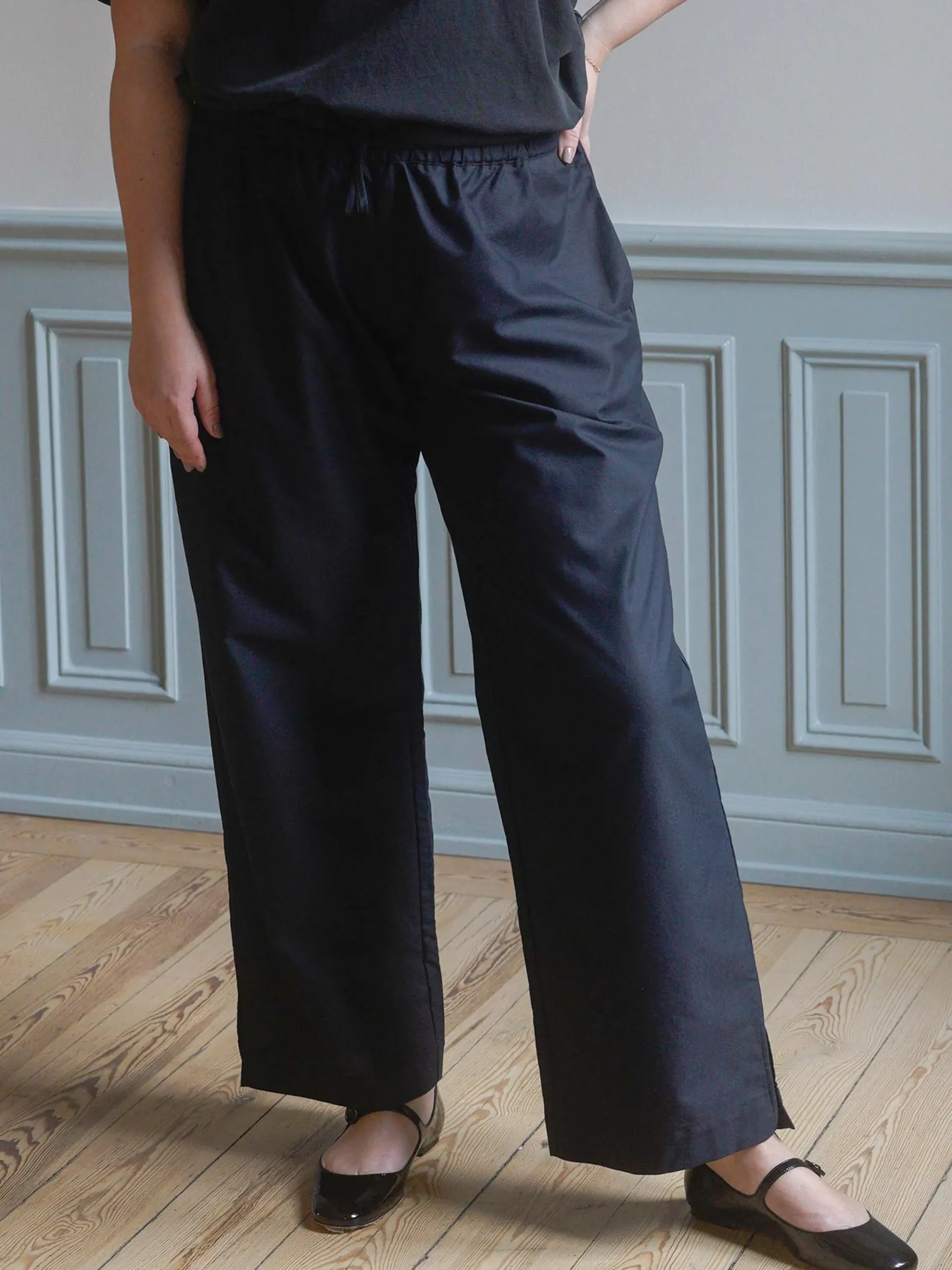 A pair of Breezy and comfortable pants with an ankle length. The drawstring waist can be placed either high- mid- or low waisted according to your preference. They have the same kind of slit at leg opening, and embroidered logo as our Breezy Shorts. We love to wear them as a set together with our Breezy Tube Tops or Breezy Shirts.