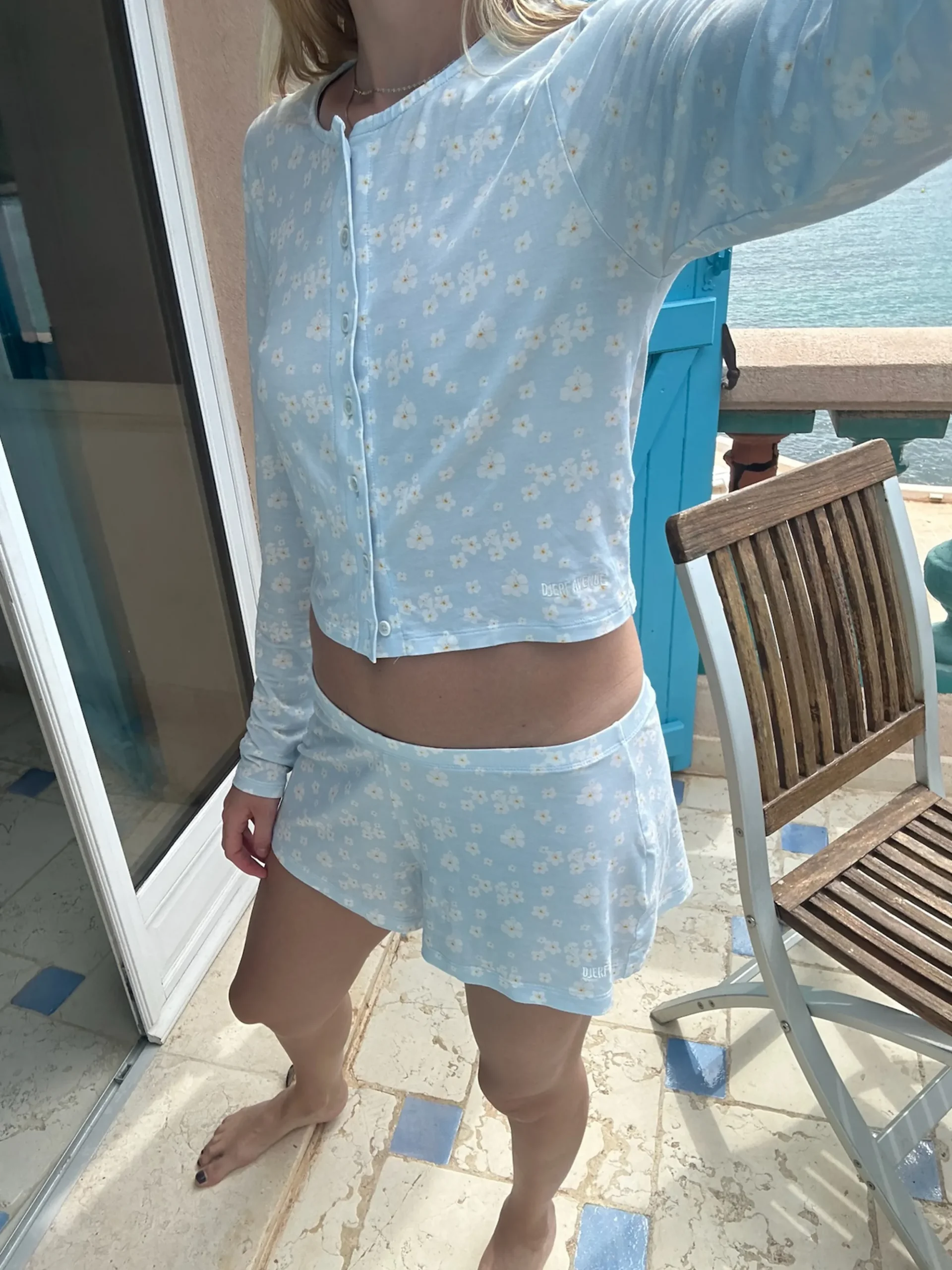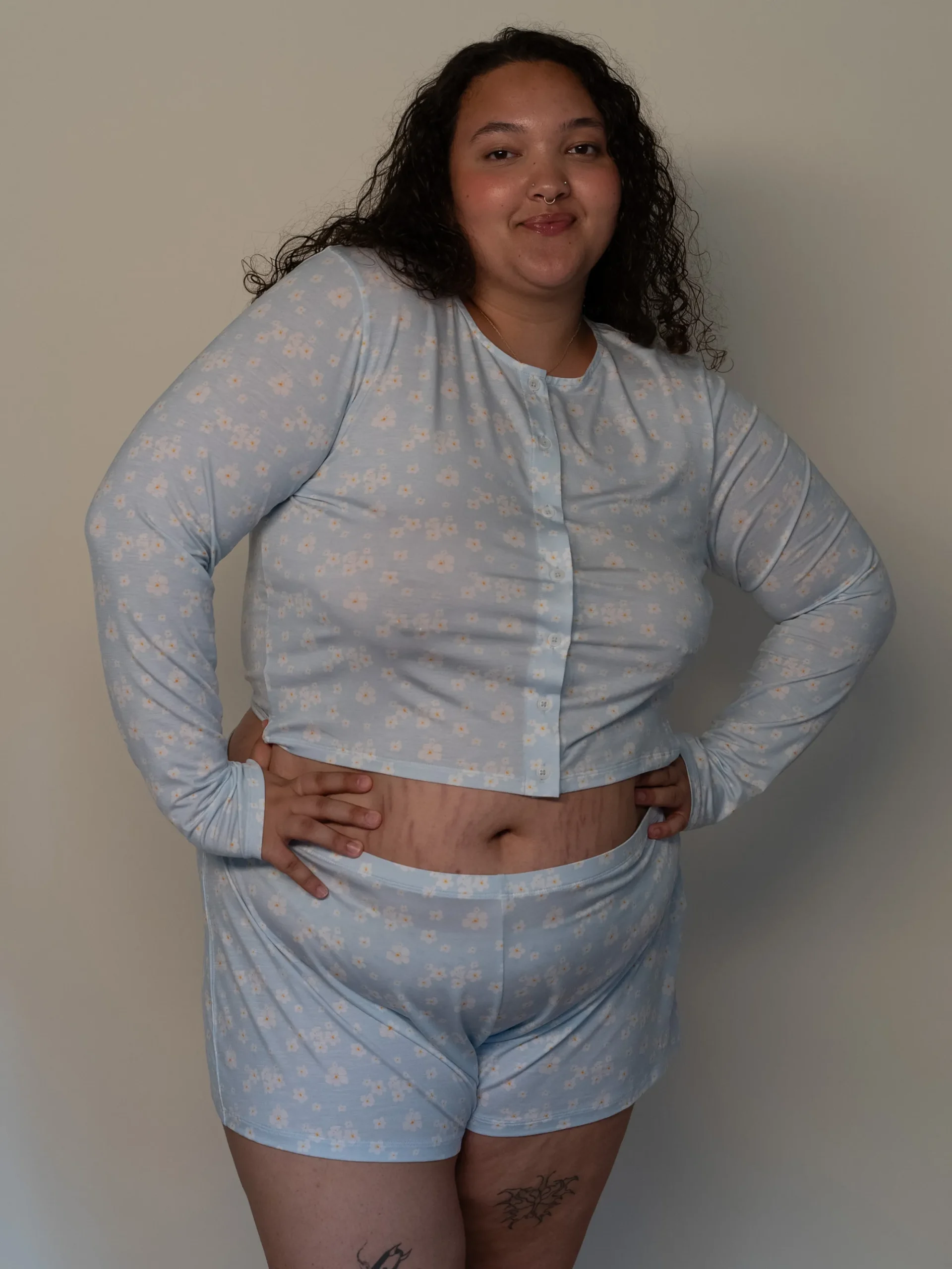 Our Go Slow Cardigan is made in a soft TENCELâ„¢ Lyocell fabric and features our unique hand-drawn print. The cardigan is fitted with a cropped length, and has a round neckline and corozo buttons at the front. Match it with our Go Slow Ruffle Shorts or Go Slow Pants for the perfect lounge set, or with a pair of denim for a more casual look.