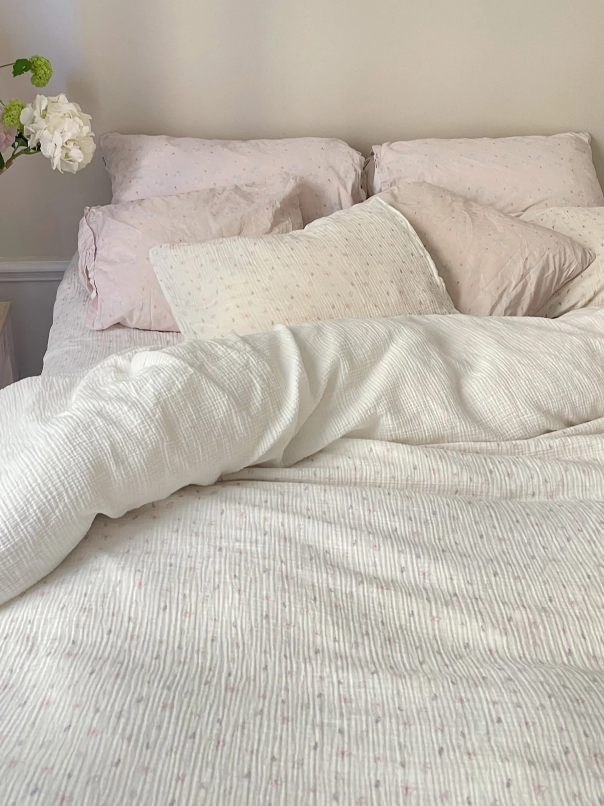 This bedding is made out of the softest muslin cotton fabric that we could possibly find! Our unique print together with the luxurious quality of organic cotton fabric, makes us want to never get out of bed. The pillowcases have one side in a solid color and the other with a pattern, and all of them feature an inside pocket to keep the pillow in place.