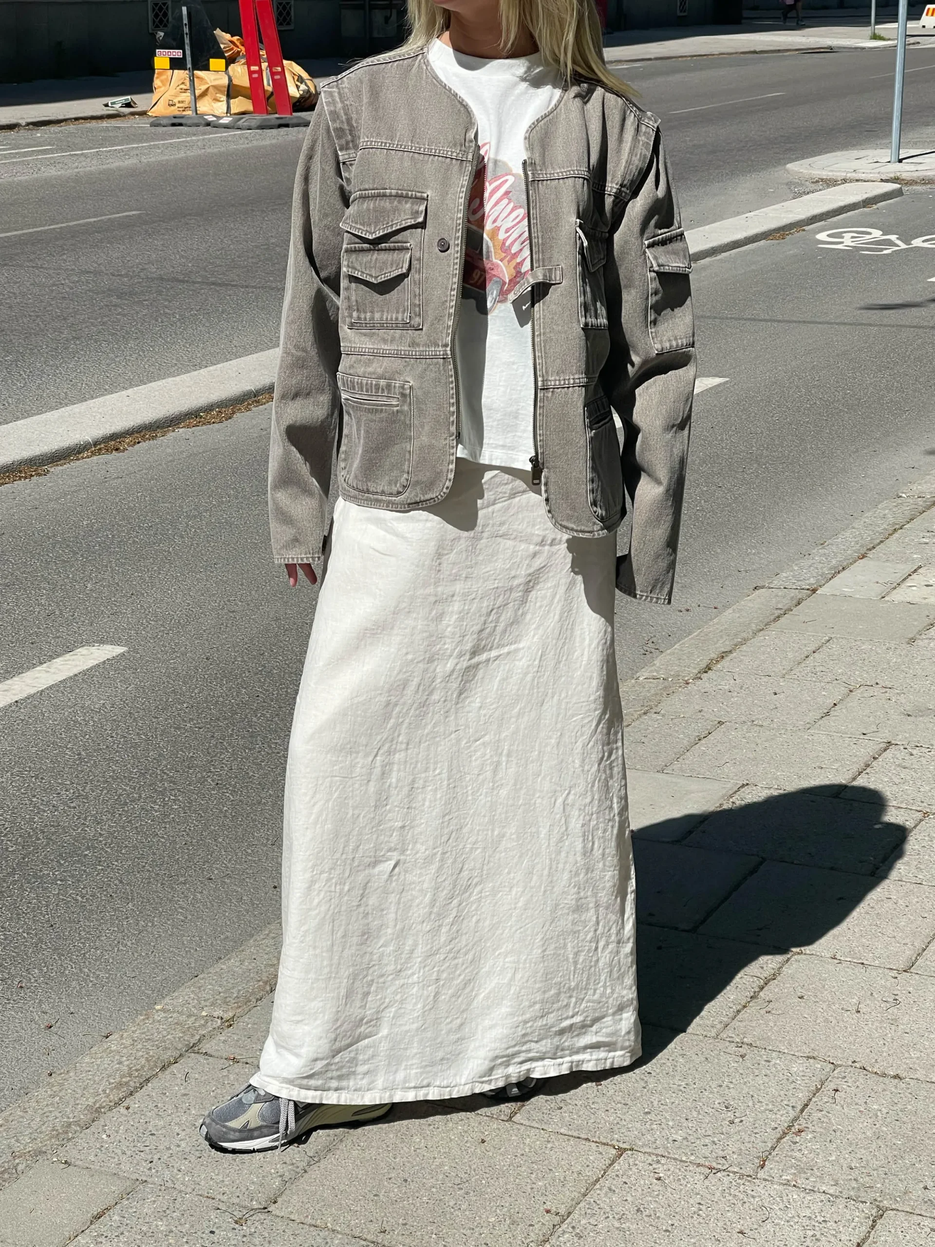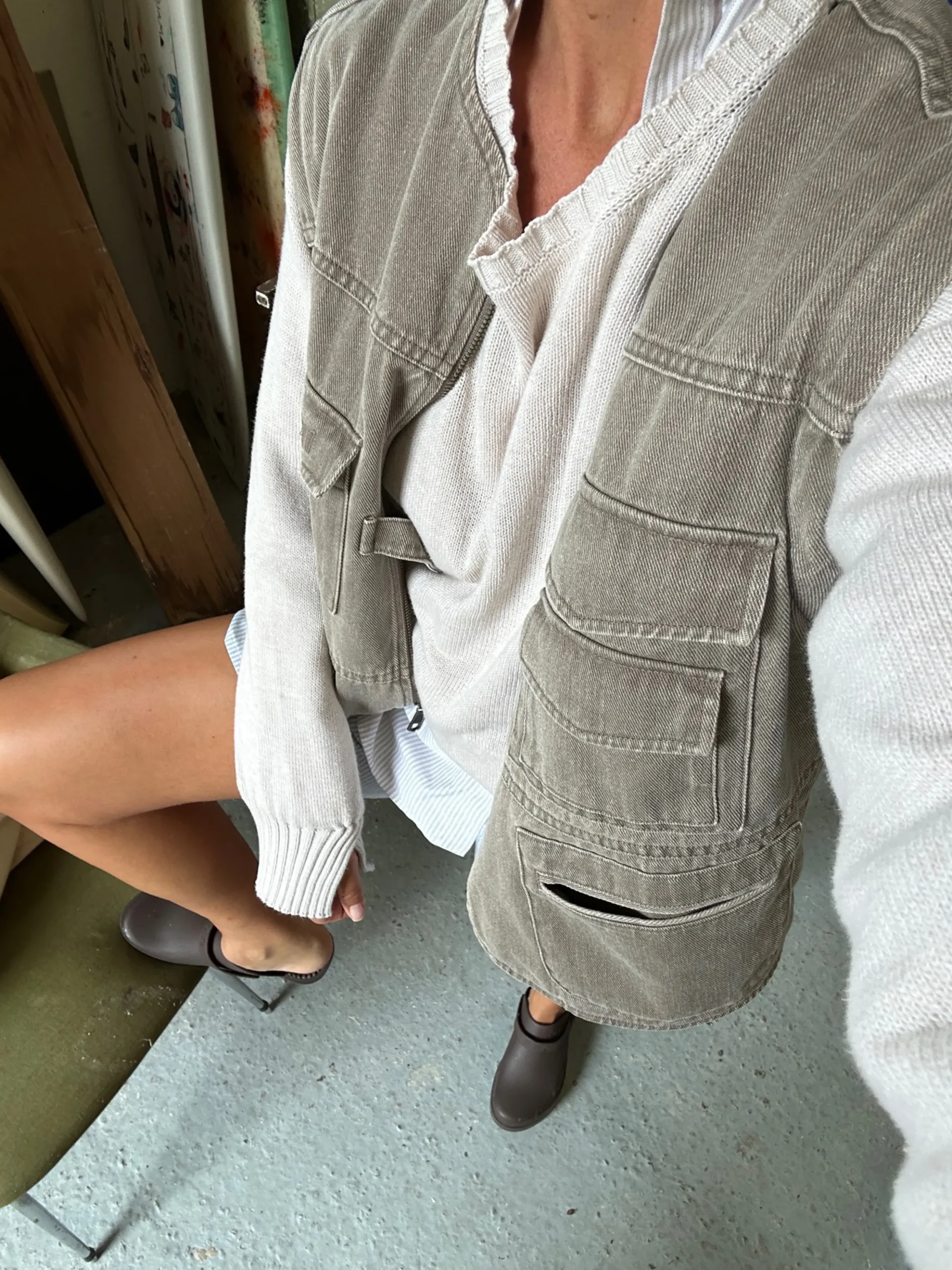 Our multi-functional Utility Jacket has a short and straight fit and is made with a heavy cotton material in the perfect washed out color. The jacket is equipped with six pockets, a zipper closure in the front and a single button with flap that can be used alone for a more relaxed closed look. But the best feature of all is probably the hidden zippers at the shoulders that can turn the jacket into a vest within seconds!