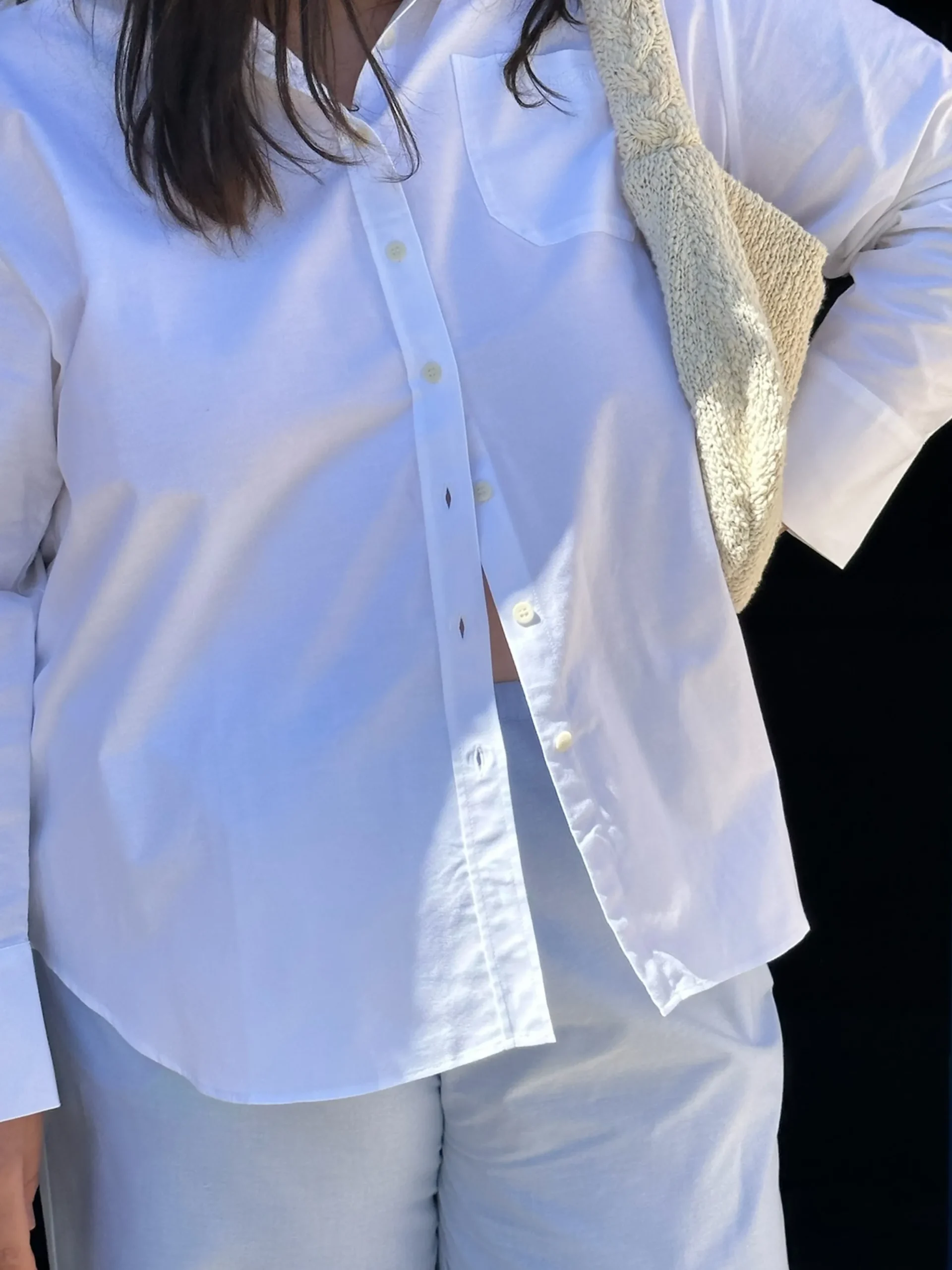 Made from the same GOTS certified organic cotton Oxford fabric as our Breezy Shirt, this is a longer version of a classic unisex shirt. This shirt has wide cuffs and a rounded hem at the front and back, making it perfect to wear casually over a pair of denim pants, or to dress up with suit pants. We also love wearing it thrown over our swim wear in the summer.