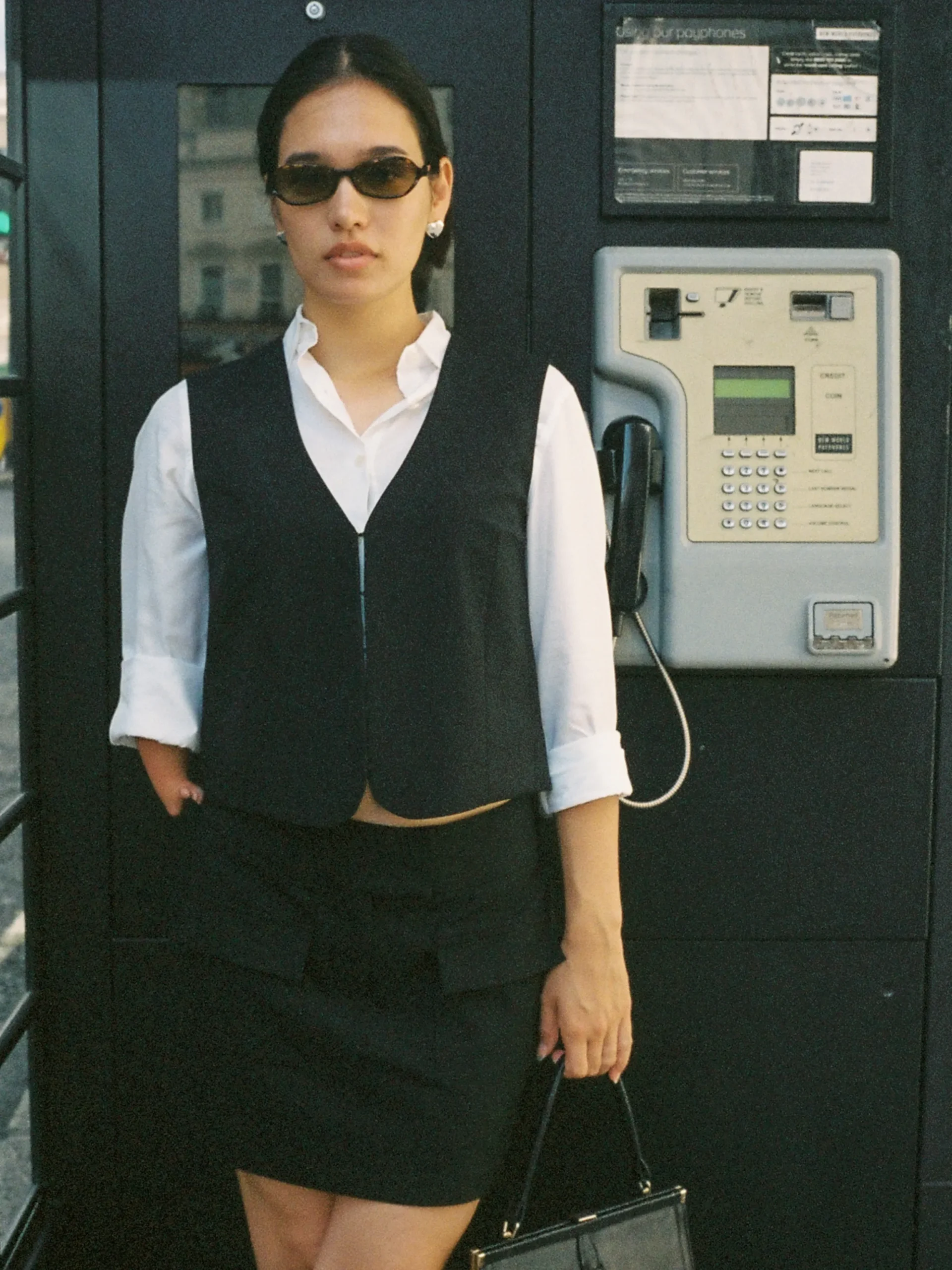 A tailored vest with an invisible and discrete hook and eye closure in the front makes this vest perfect to wear as a minimalistic top on its own, or over a top or shirt as a second layer or part of a suit. The vest has a slightly shaped silhouette, while the fit is still straight and comfortable.