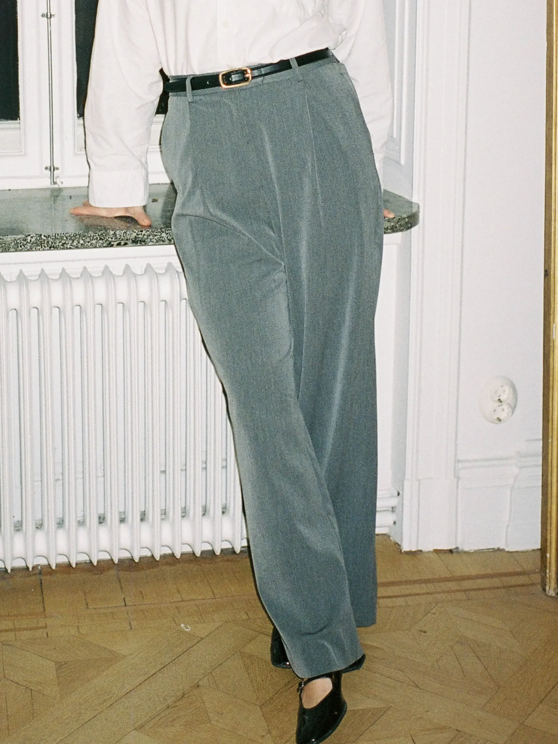 - Folded pleat at the front