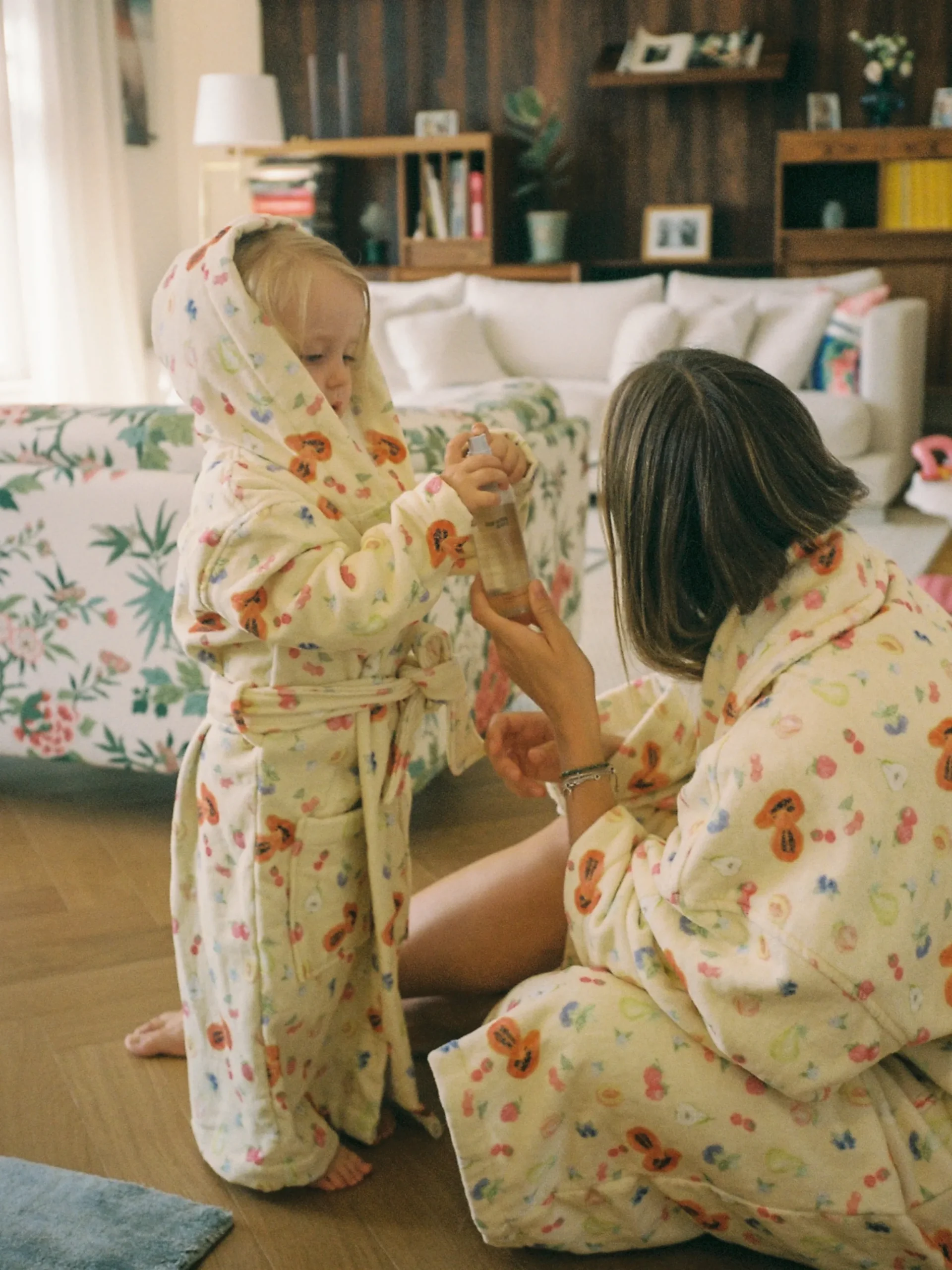 To be able to match with your mini angels, we bring you the Mini Robes! It has the same details as our original terry robes, with the front pockets, belted waist and printed in our classic prints, but they also have the addition of a cozy hood. Perfect to snuggle up in for breakfast, after a bath or on the beach!Mini Robe size conversion: 2 years = 2A(US) 98 (EU) 4 years = 4A(US) 104 (EU) 6 years = 6A(US) 116 (EU) 8 years = 8A(US) 128(EU)