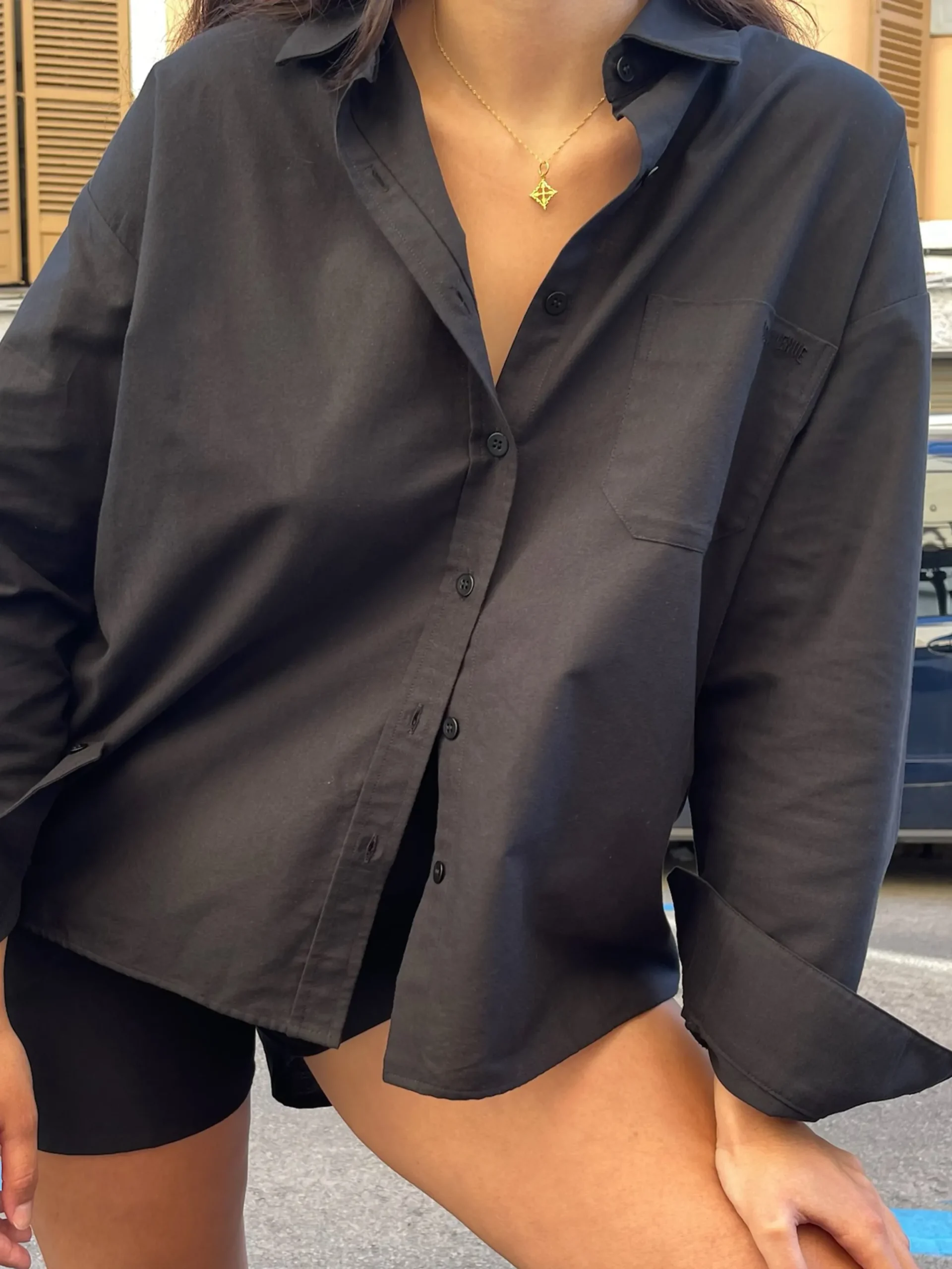 Our Breezy Shirt quickly became a staple piece in all of our wardrobes. It’s a must-have item for every season. It’s easy, light and so comfortable that we want to wear it every day. It closes at front with 100% natural corozo buttons, has a cute breast pocket with our embroidered logo and a slit in the back. The fit is quite boxy and a bit oversized, just how we like it.