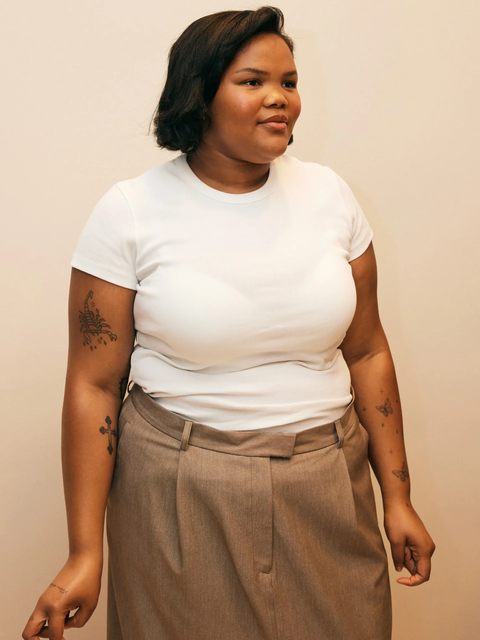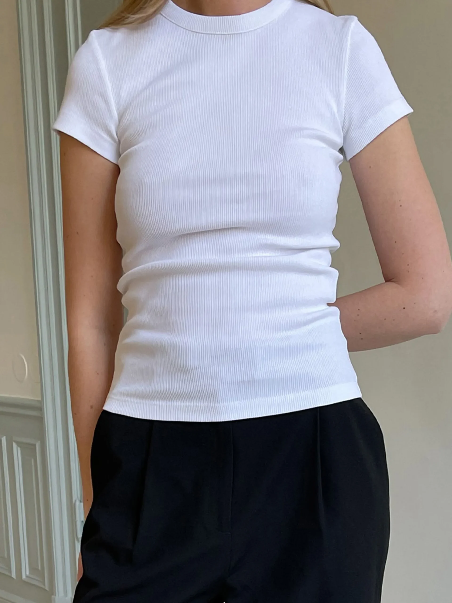 We created our basic range to be the perfect essentials to wear daily. It’s versatile, comfortable, and timeless, made to be worn with everything in your closet. The Daily T-Shirt White is made from a thick ribbed organic cotton fabric. It has a round neckline, short sleeves and a fitted silhouette. Fits true to size.